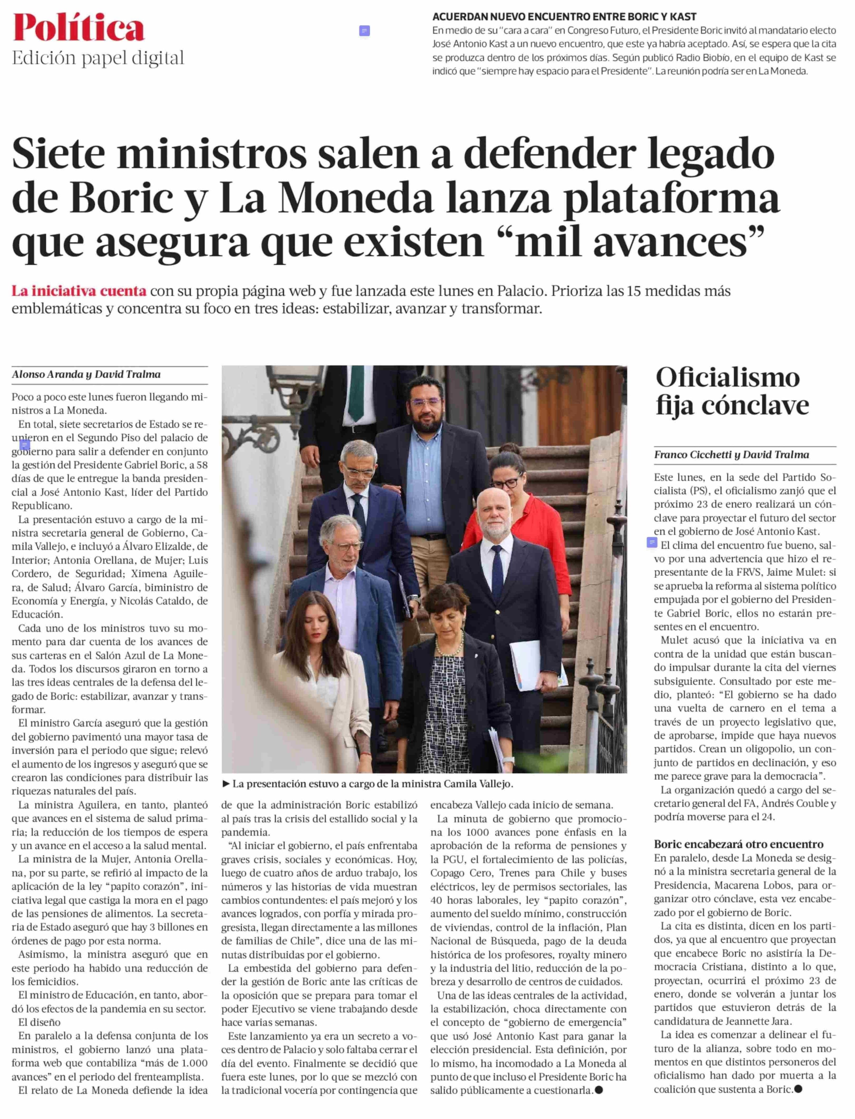 Título: Siete ministros salen a defender legado de Boric y La Moneda lanza plataforma que asegura que existen "mil avances"