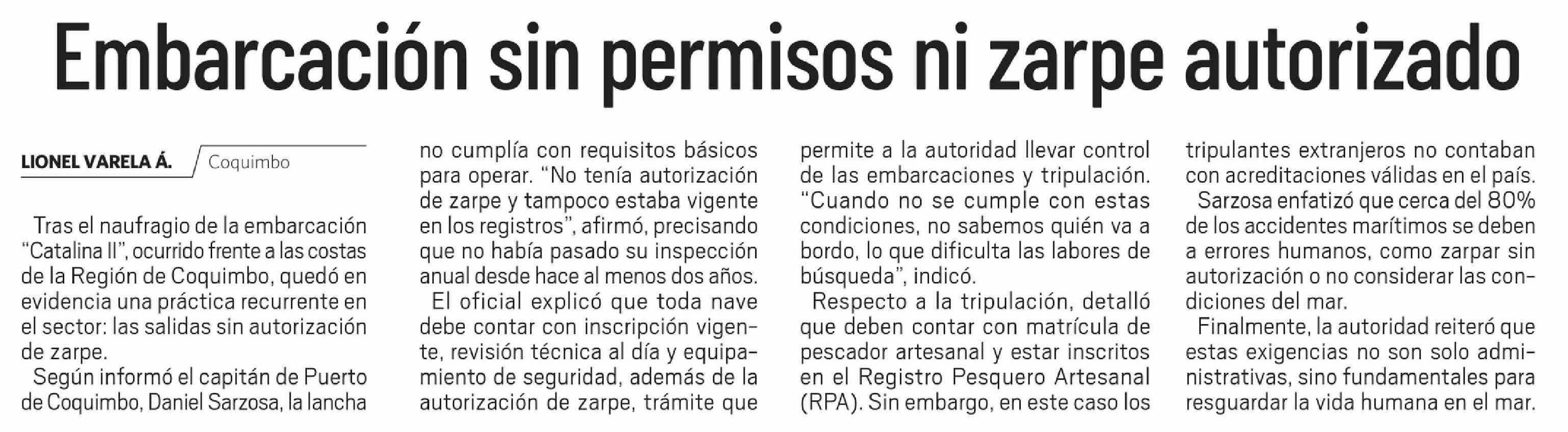 Embarcación sin permisos ni zarpe autorizado 28-03-2026 El Día |