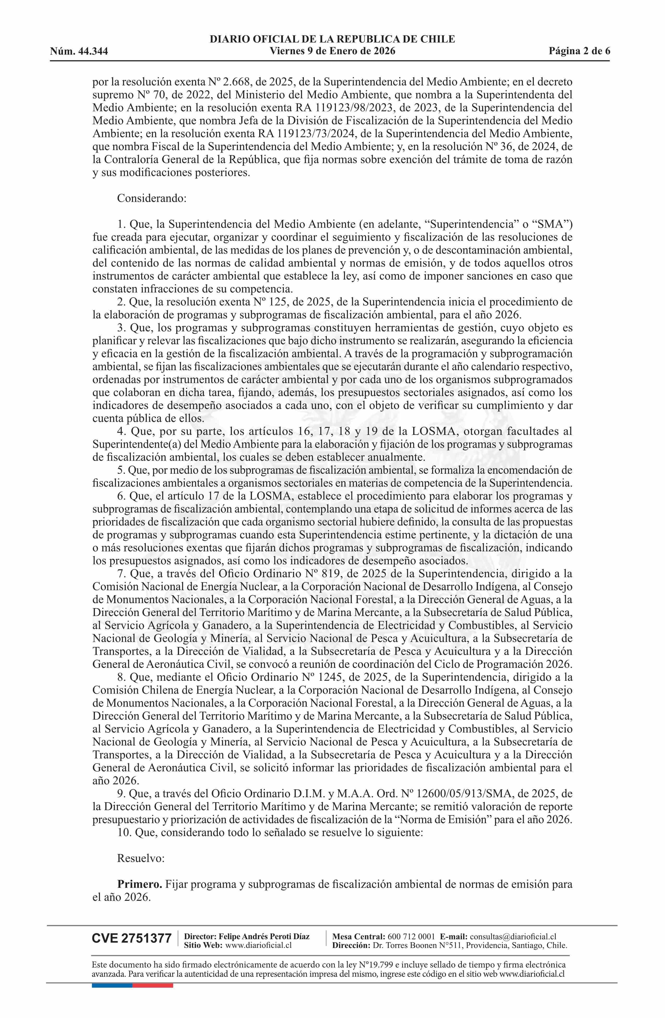 Título: AVISO LICITACIONES: Resolución exenta número 2.996, de 2025.- Fija programa y subprograma de fiscalización ambiental de normas de emisión para el año 2026