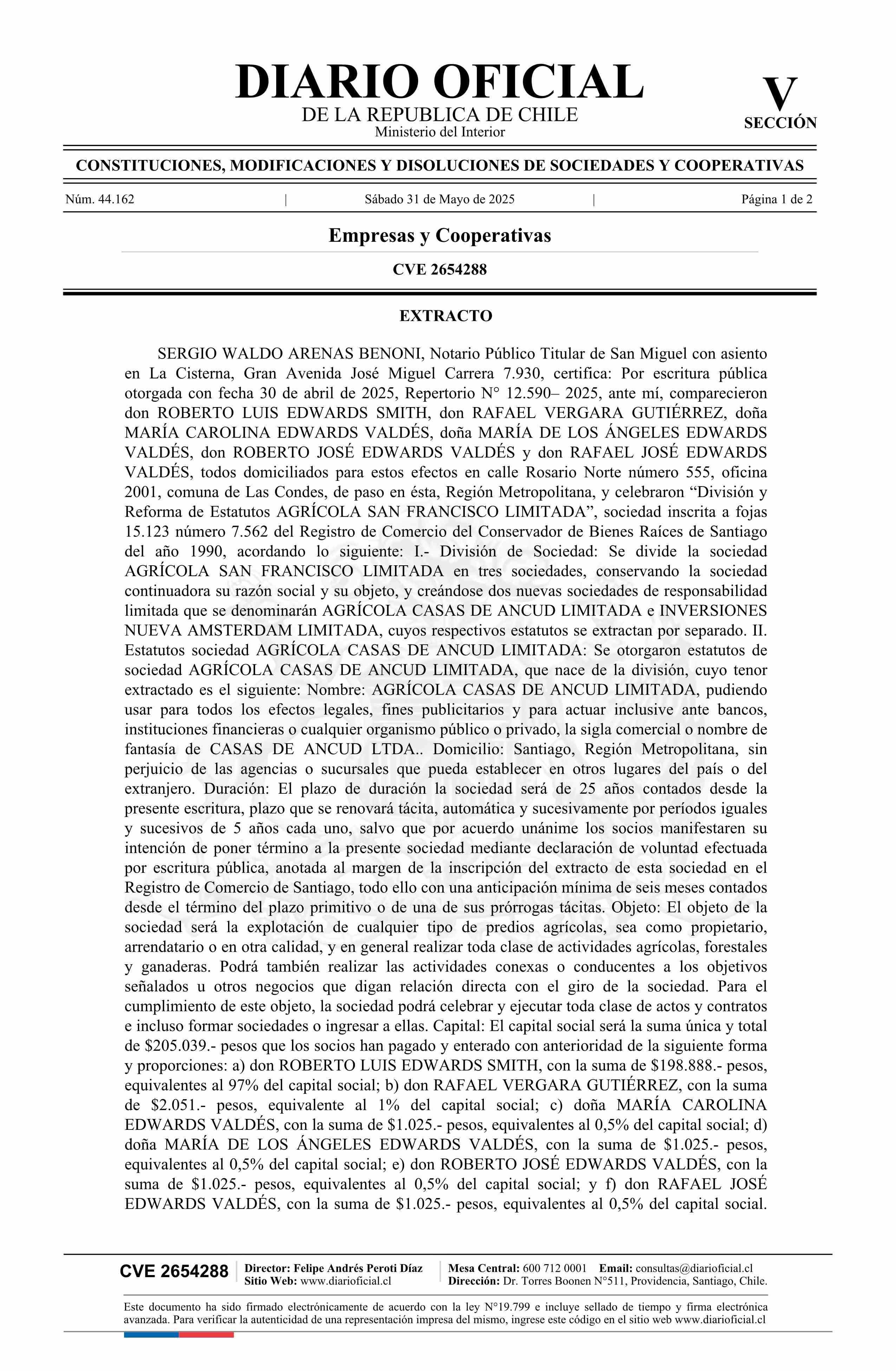 AGRÍCOLA CASAS DE ANCUD LIMITADA 31-05-2025 Diario Oficial Edición Electrónica |