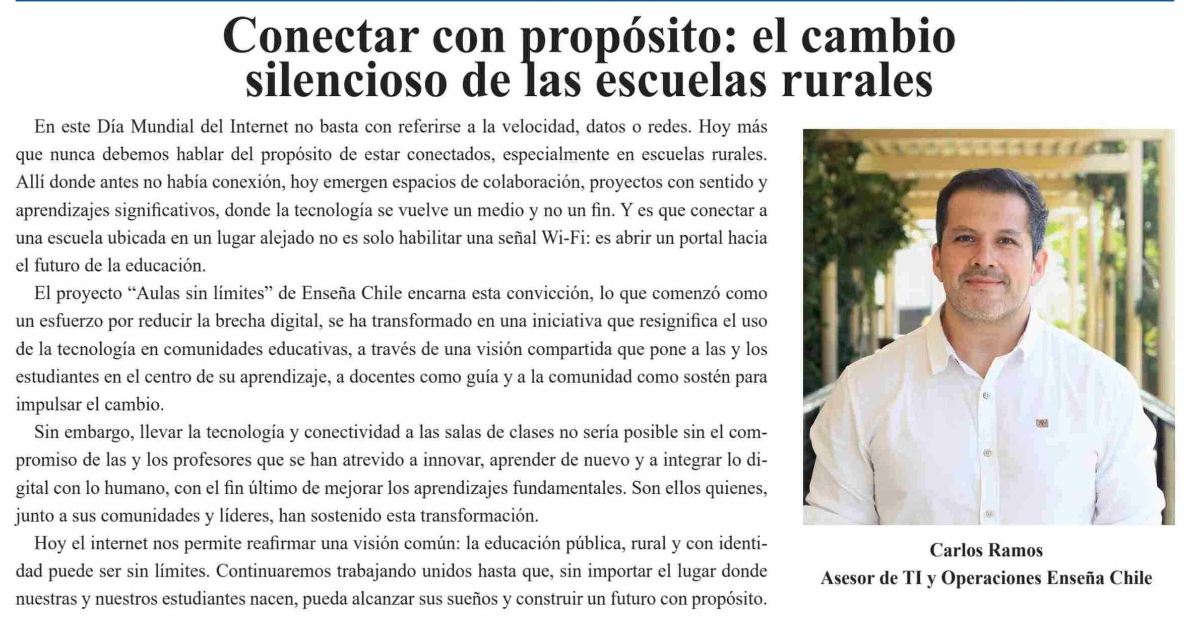 | Título: | COLUMNAS DE OPINIÓN: Conectar con propósito: el cambio silencioso de las escuelas rurales |