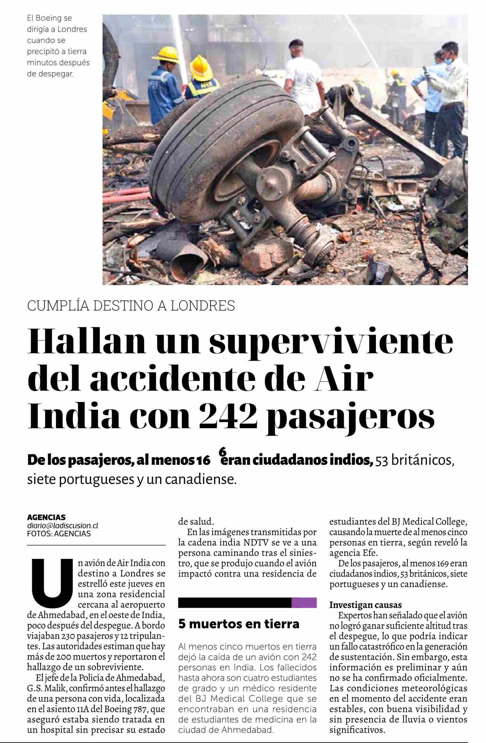 Hallan un superviviente del accidente de Mir India con 242 pasajeros 13-06-2025 La Discusión |