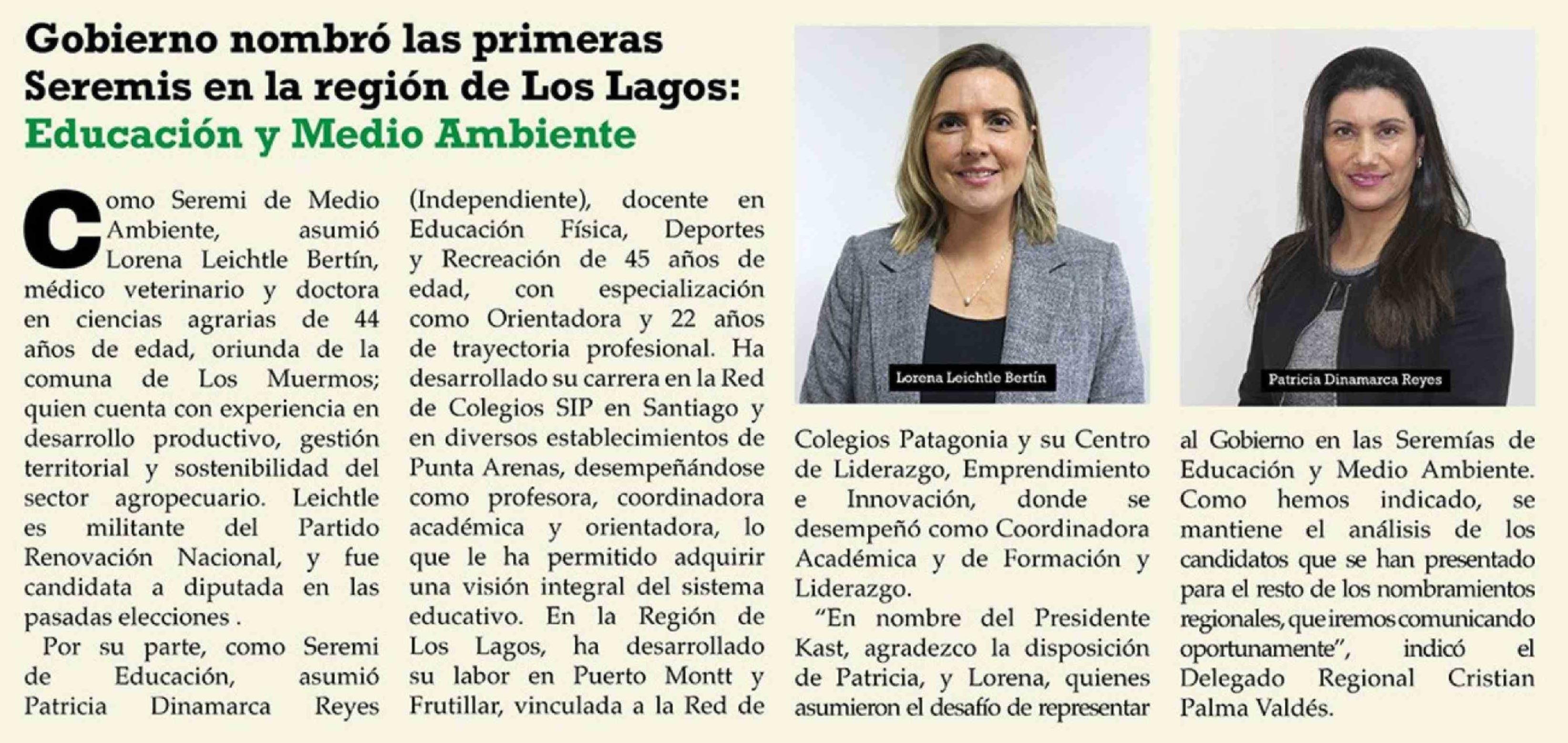 Gobierno nombró las primeras Seremis en la región de Los Lagos: Educación y Medio Ambiente 26-03-2026 El Heraldo Austral |