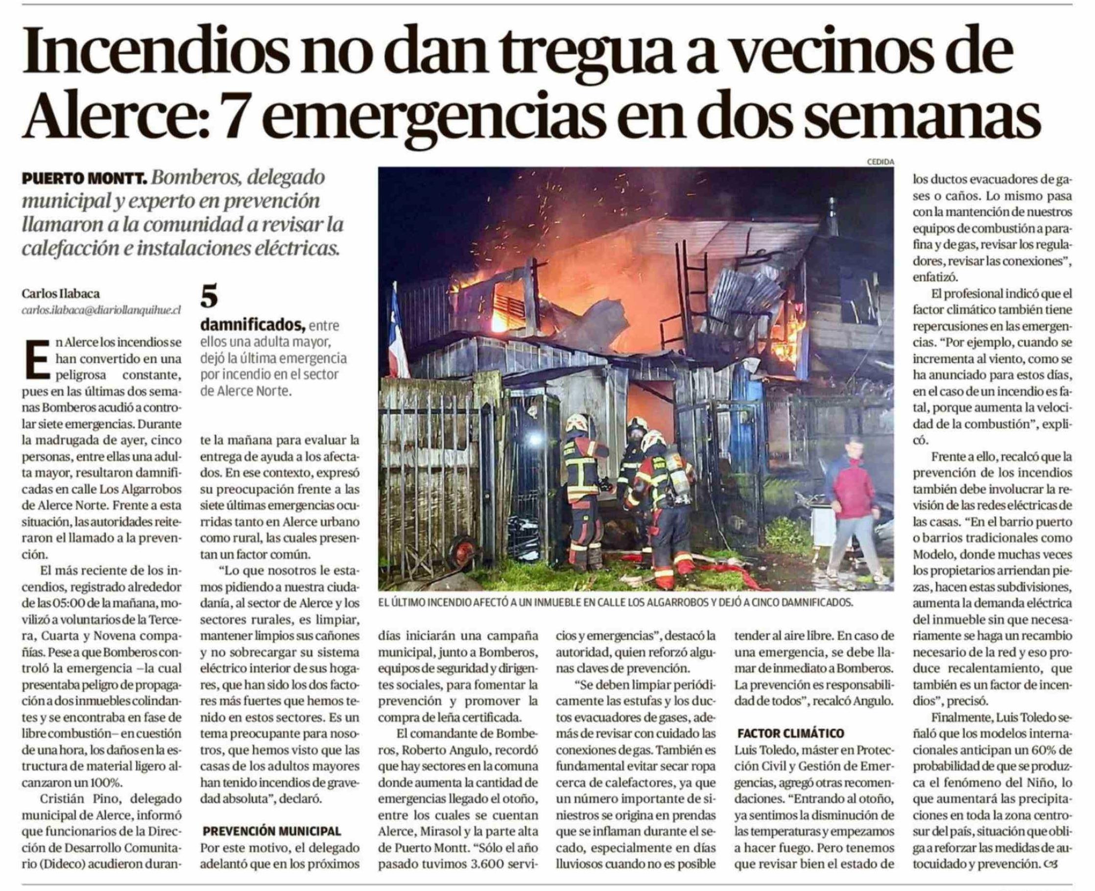 Título: Incendios no dan tregua a vecinos de Alerce: 7 emergencias en dos semanas