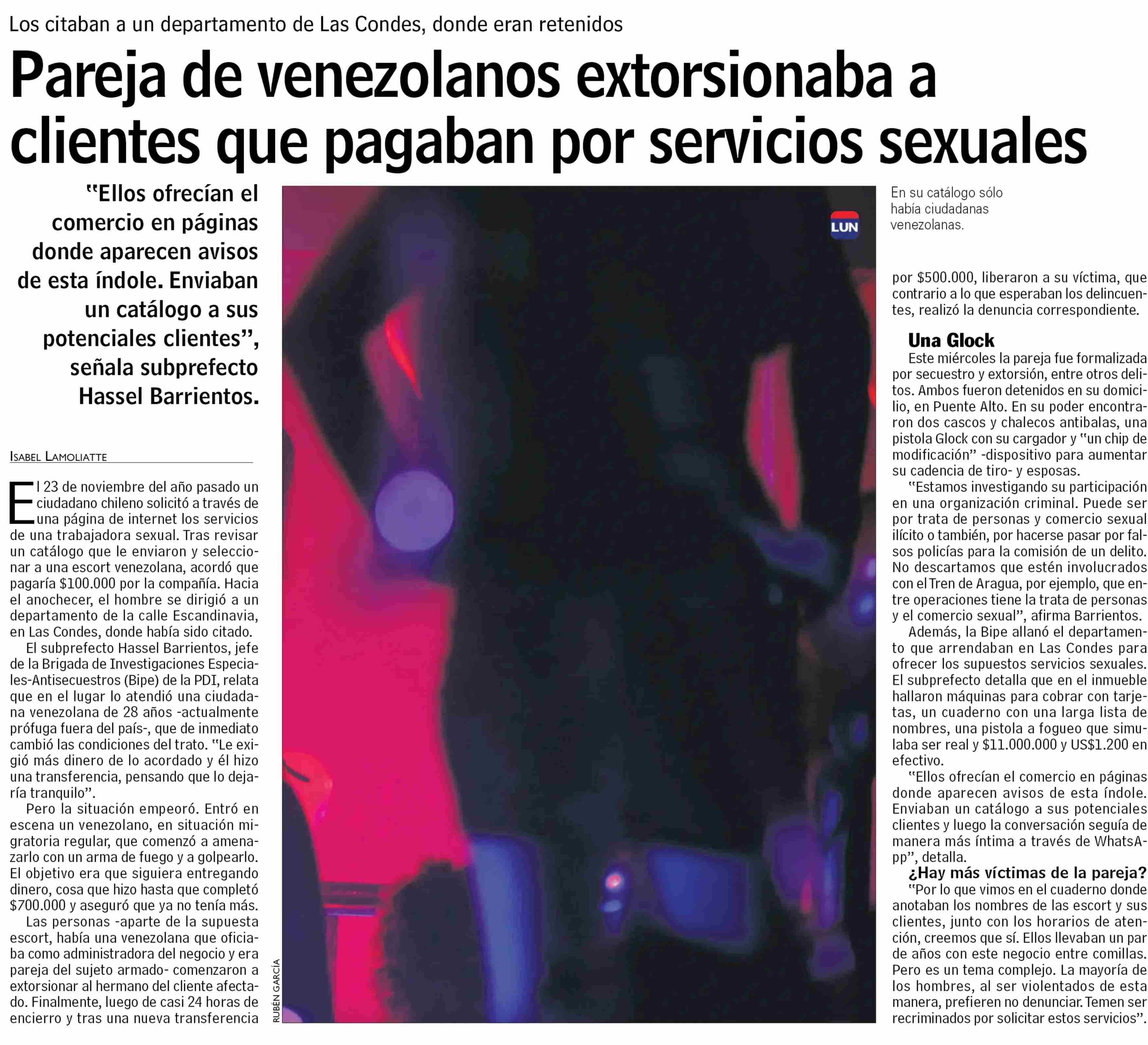 | Título: | Pareja de venezolanos extorsionaba a clientes que pagaban por servicios sexuales |