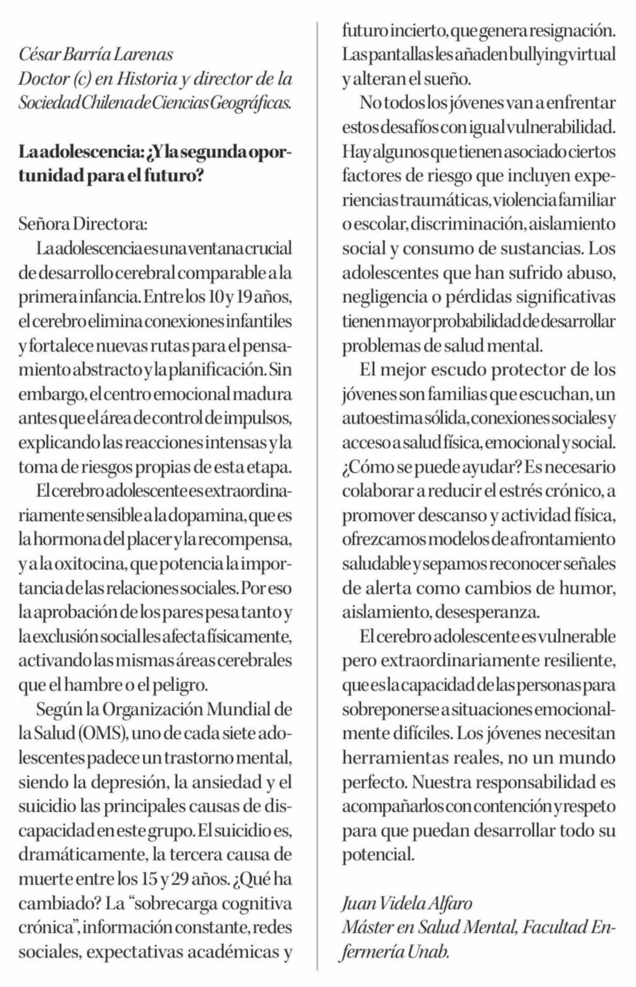Cartas: La adolescencia: ¿ Y la segunda oportunidad para el futuro?