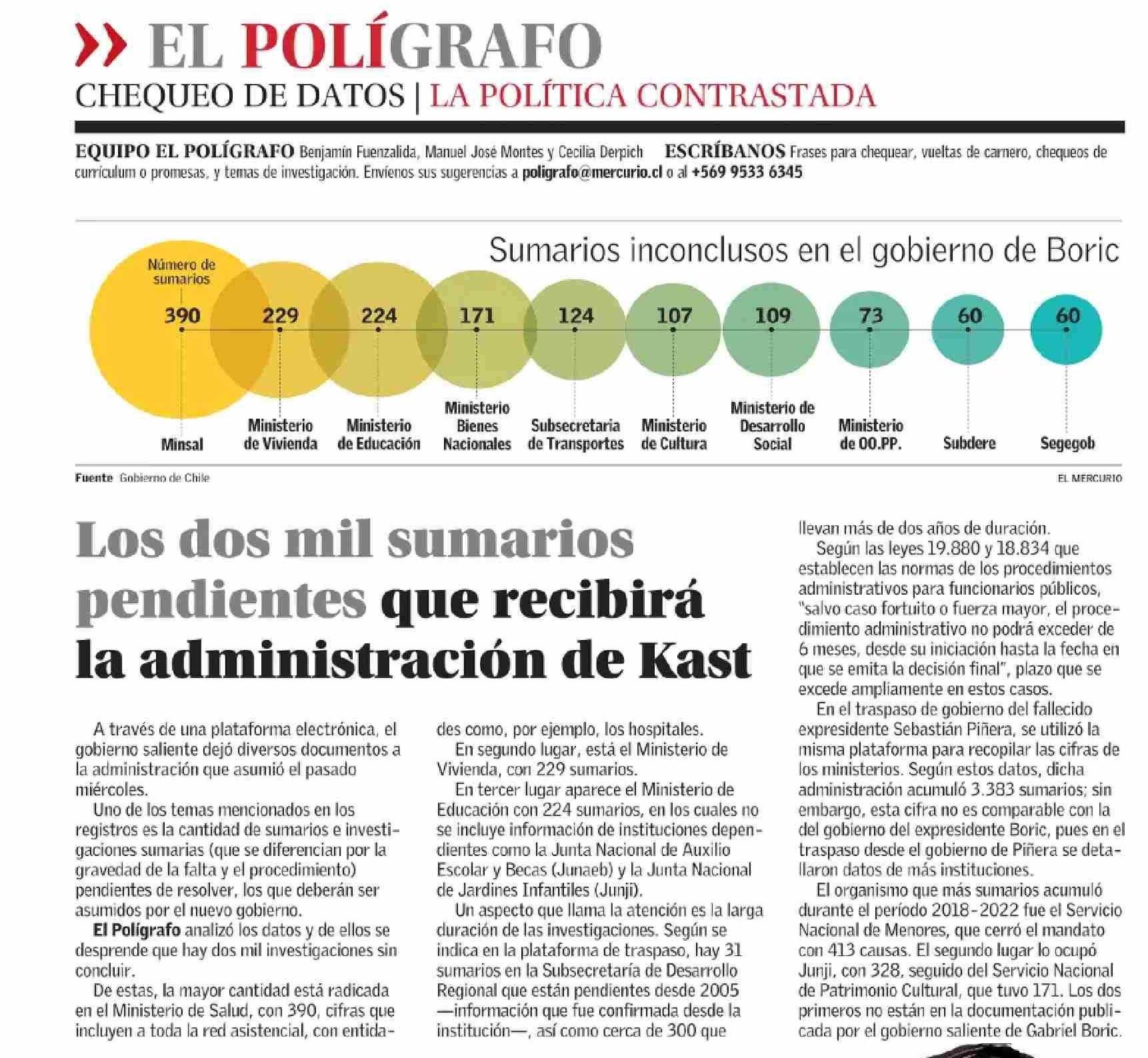 Los dos mil sumarios pendientes que recibirá la administración de Kast 16-03-2026 El Mercurio |