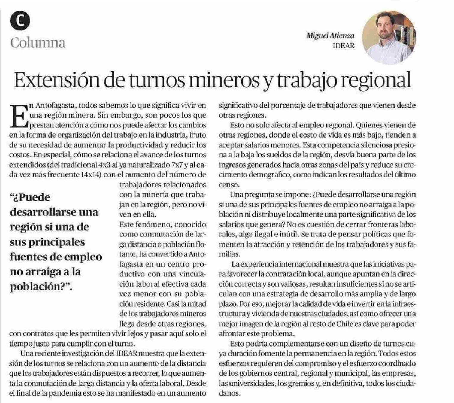 Extensión de turnos mineros y trabajo regional 13-05-2025 El Mercurio de Antofagasta |