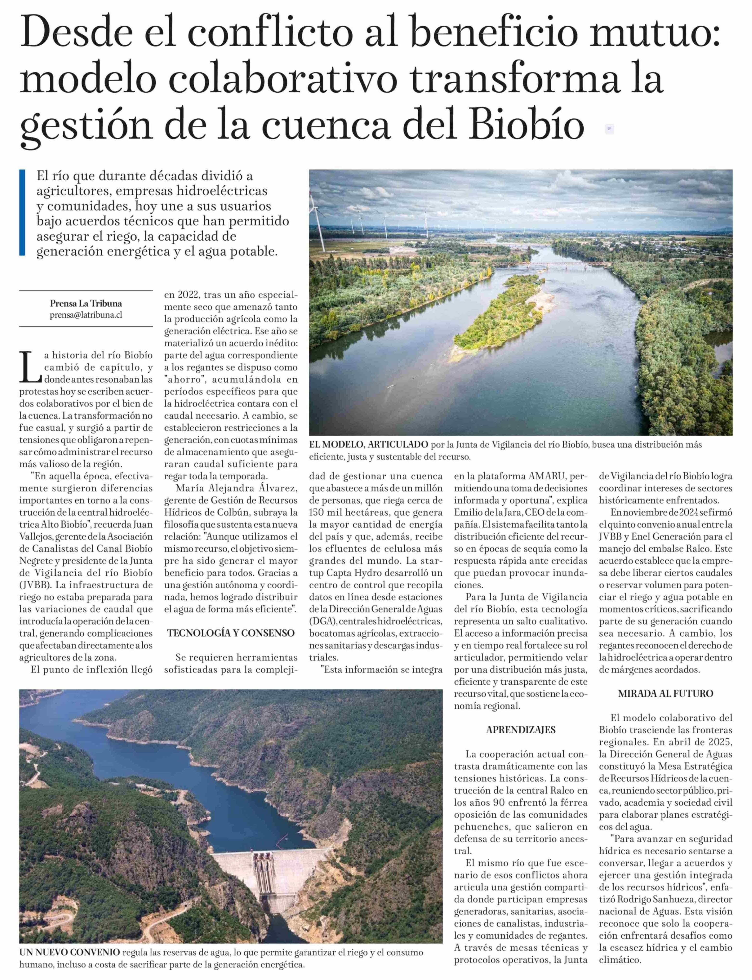 Desde el conflicto al beneficio mutuo: modelo colaborativo transforma la gestión de la cuenca del Biobío 06-06-2025 La Tribuna |