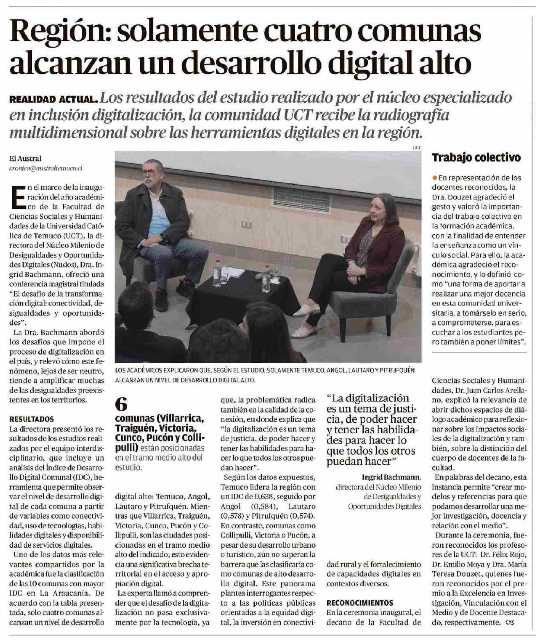 Región: solamente cuatro comunas alcanzan un desarrollo digital alto 05-05-2025 El Austral de la Araucanía |