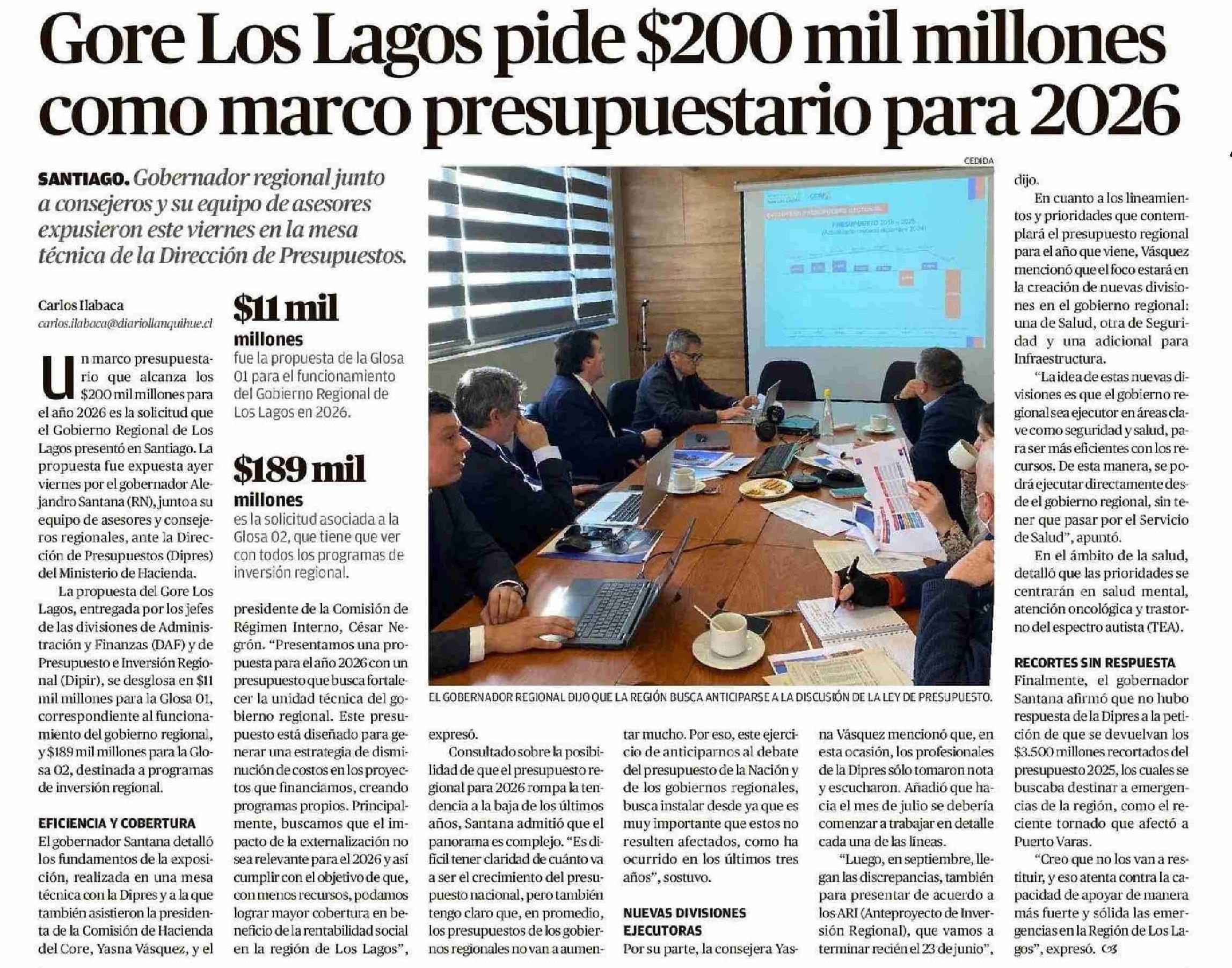 | Título: | Gore Los Lagos pide $200 mil millones como marco presupuestario para 2026 |