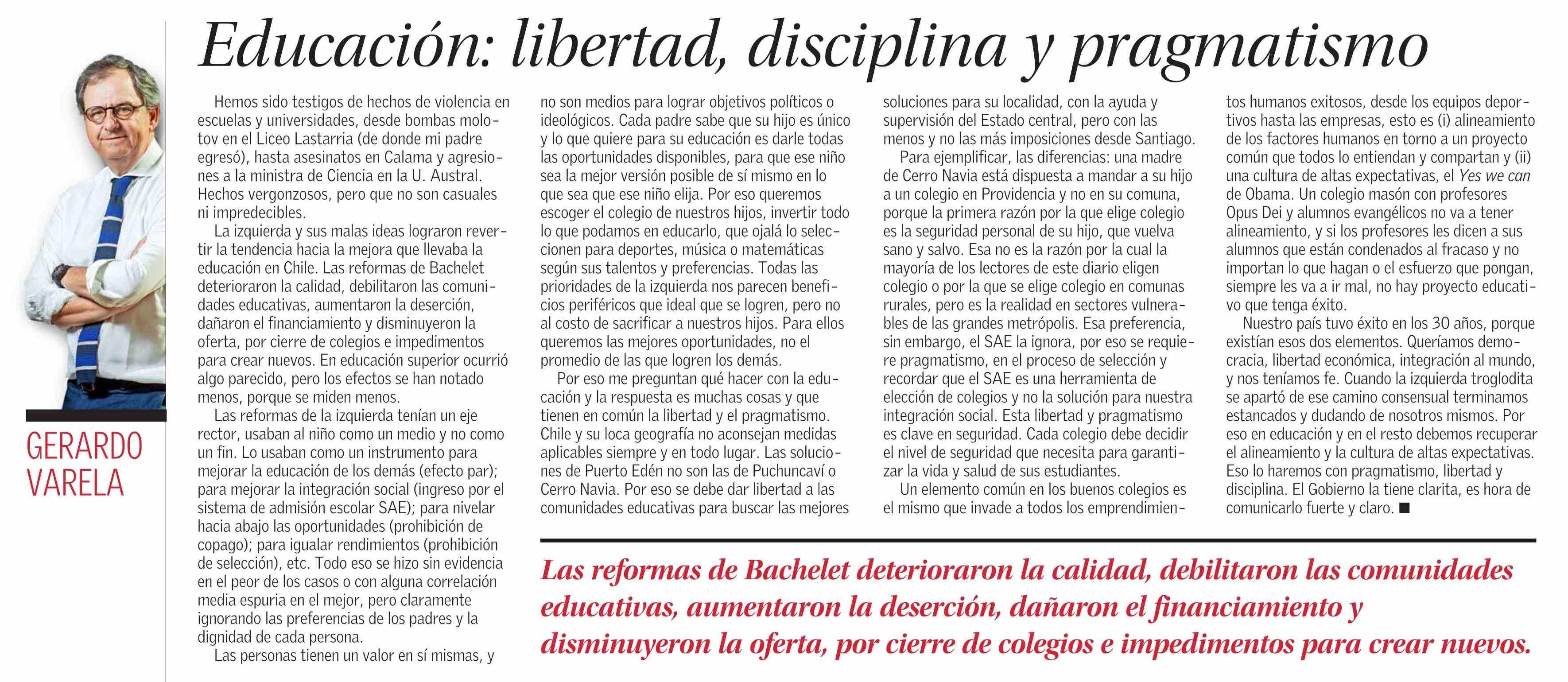Columnas de Opinión: Educación: libertad, disciplina y pragmatismo 12-04-2026 El Mercurio |