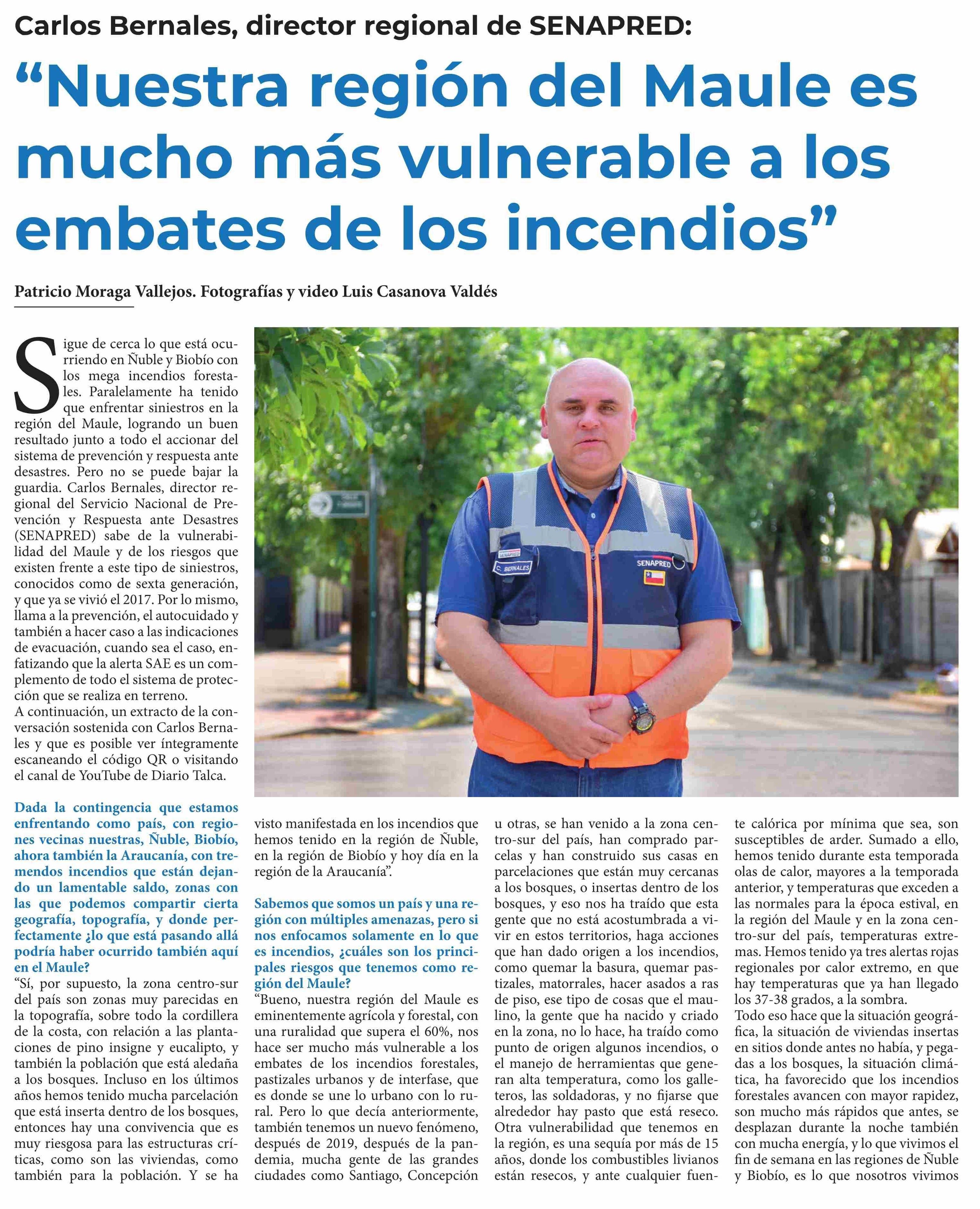 "Nuestra región del Maule es mucho más vulnerable a los embates de los incendios" 25-01-2026 Diario Talca |