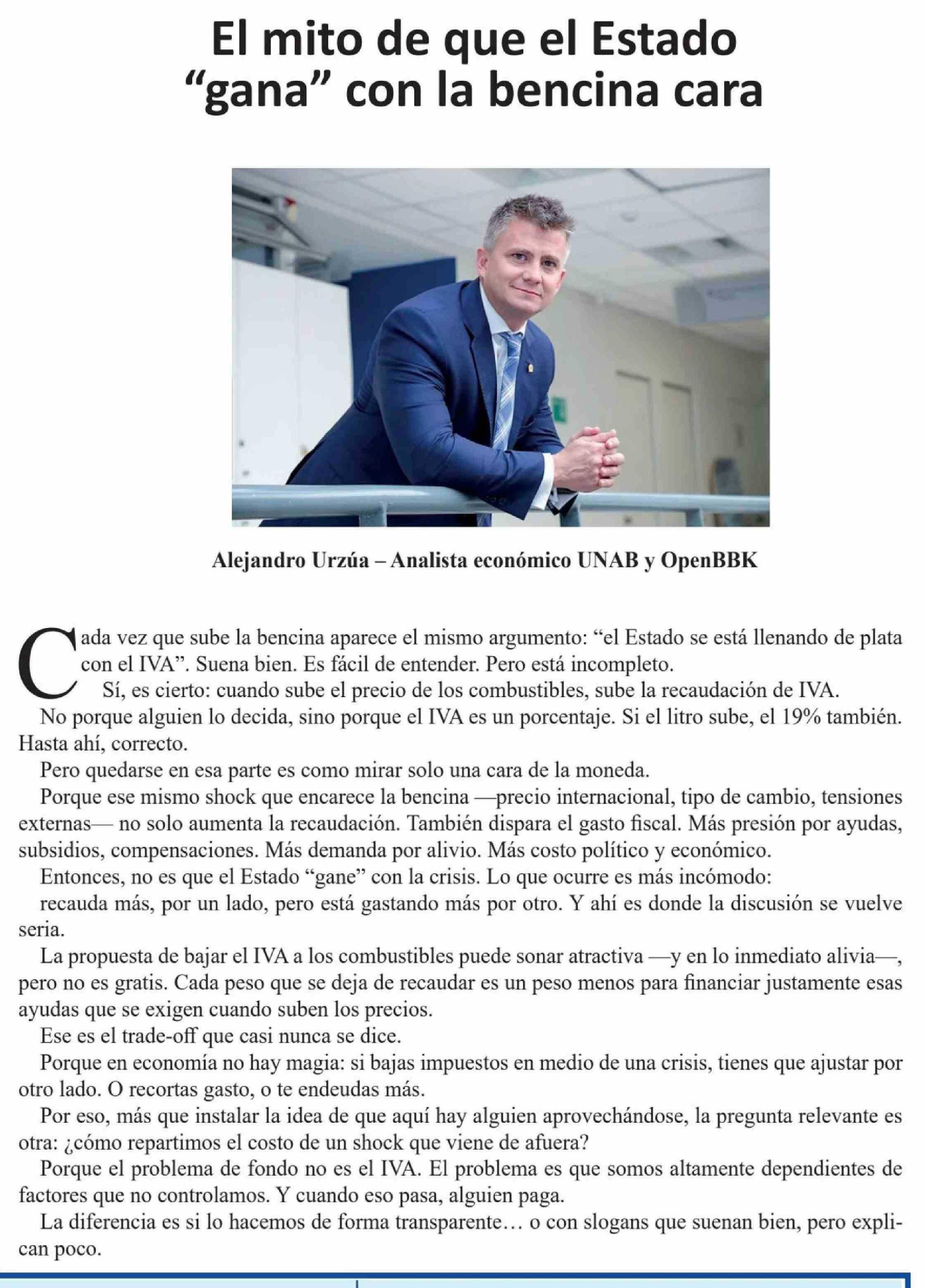 Título: Columnas de Opinión: El mito de que el Estado "gana" con la bencina cara