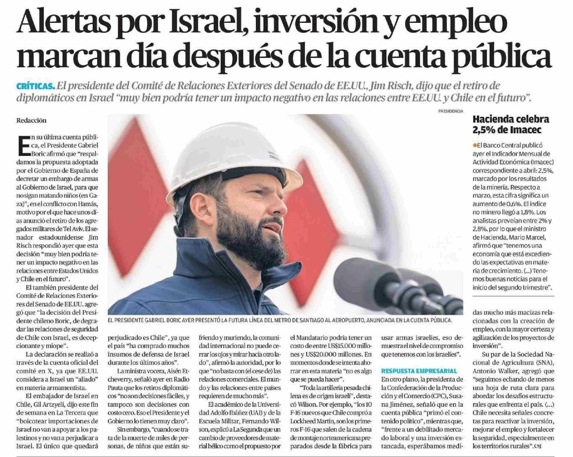 Alertas por Israel, inversión y empleo marcan día después de la cuenta pública 03-06-2025 El Diario de Atacama |
