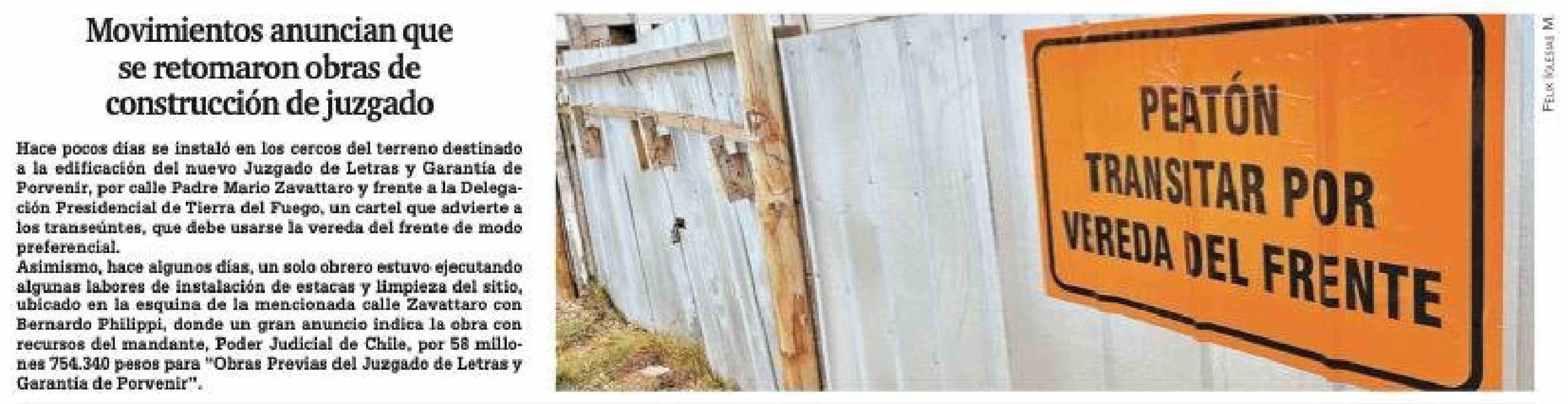 Movimientos anuncian que se retomaron obras de construcción de juzgado 03-02-2026 La Prensa Austral |