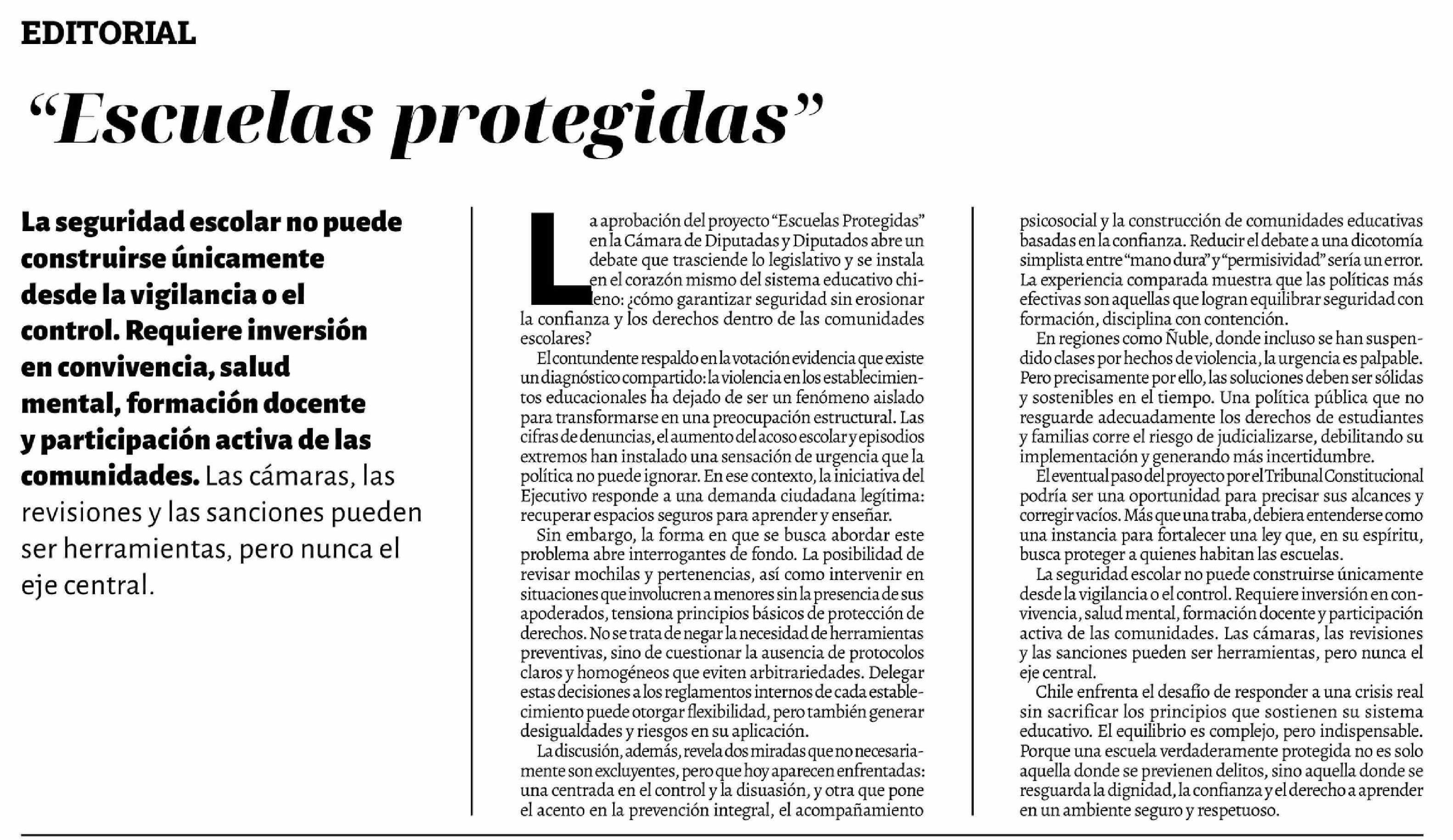 Editorial: "Escuelas protegidas" 22-04-2026 La Discusión |