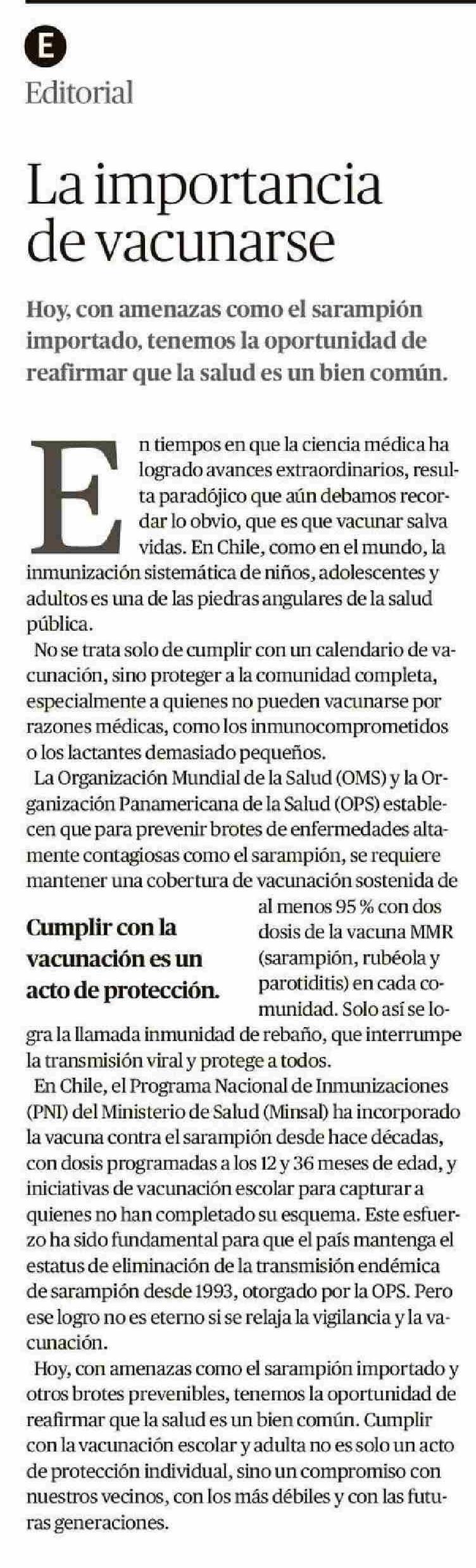 Editorial: La importancia de vacunarse 18-01-2026 El Austral de la Araucanía |