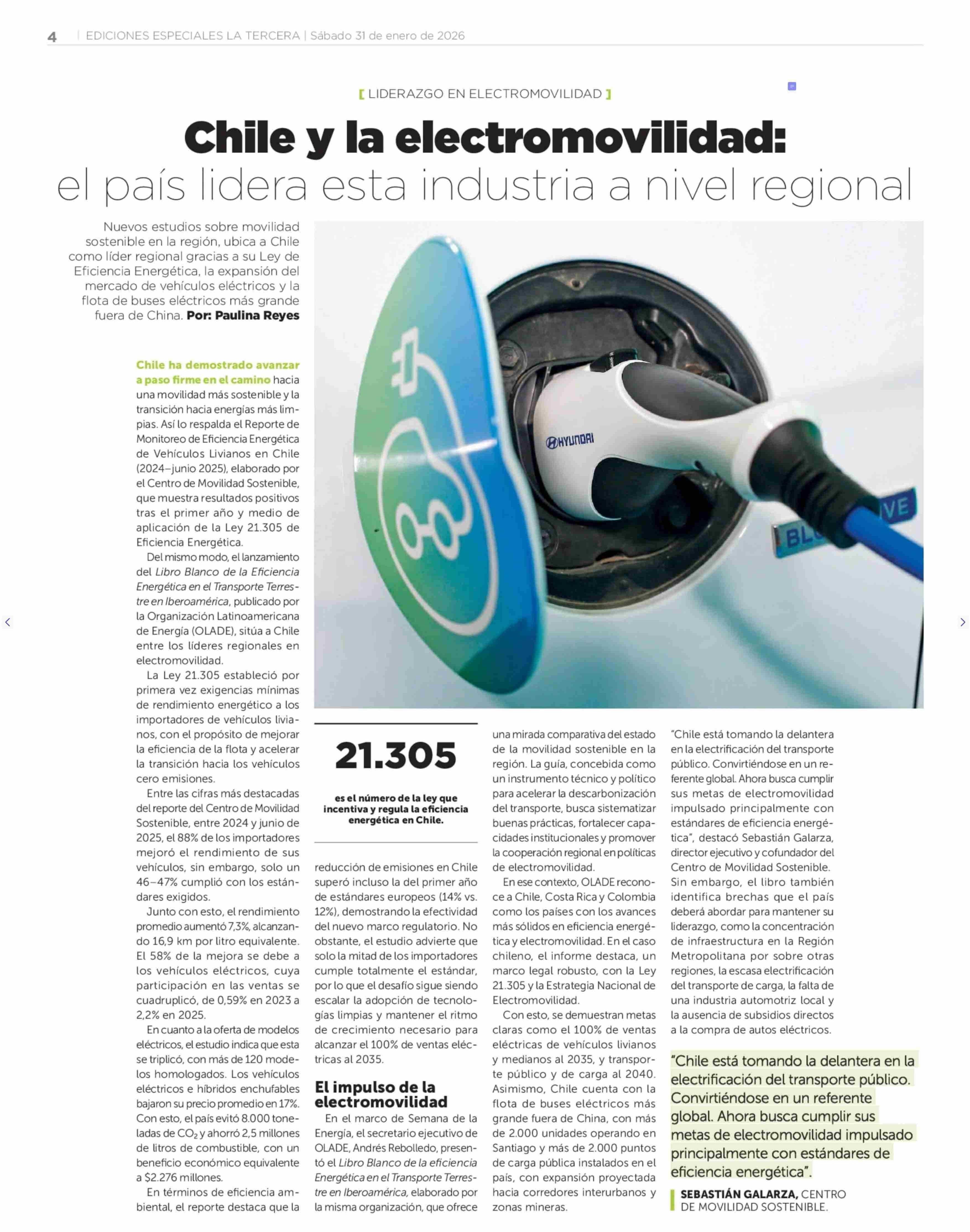 Chile y la electromovilidad: el pals lidera esta industria a nivel regional 31-01-2026 La Tercera |