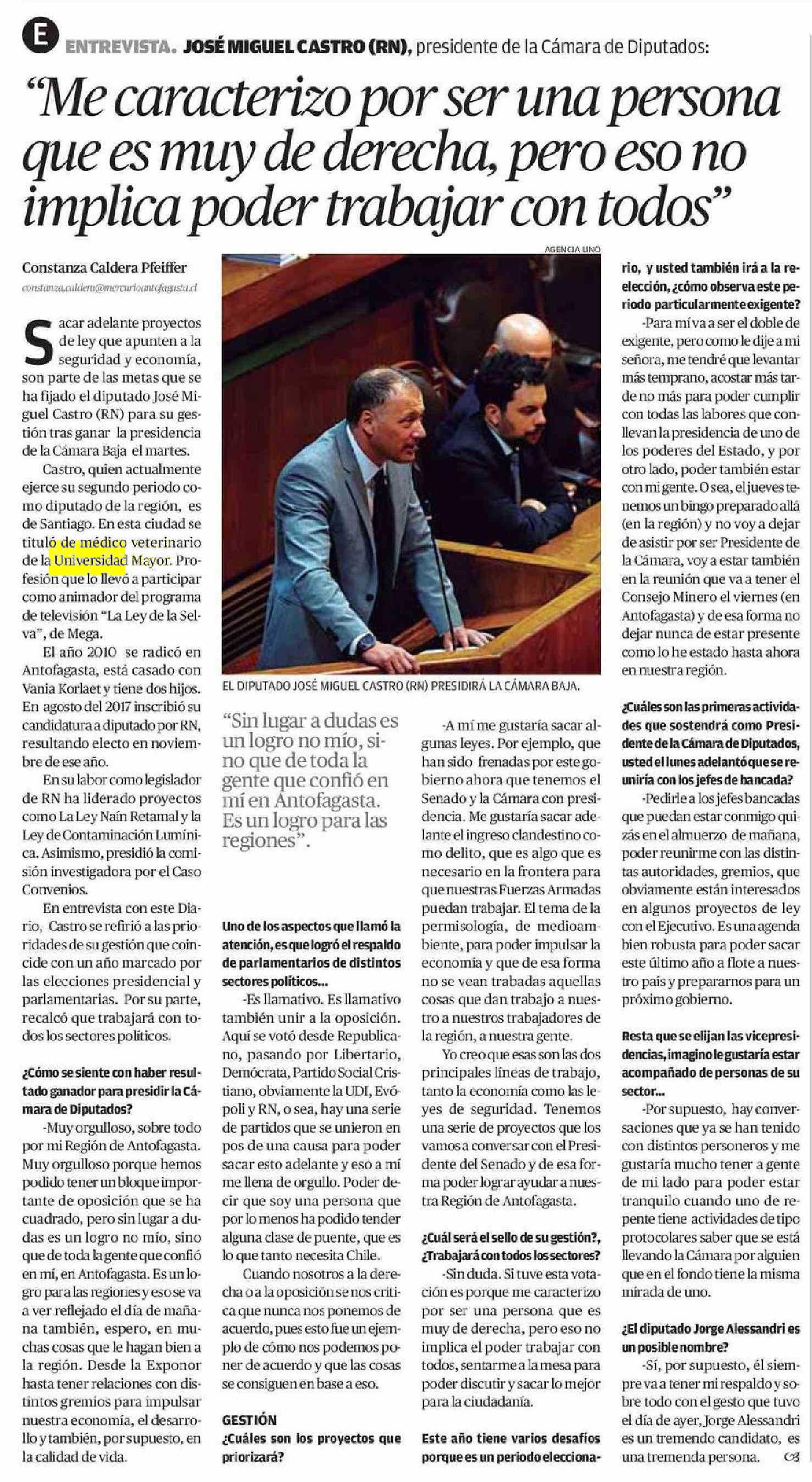 “Me caracterizo por ser una persona que es muy de derecha, pero eso no implica poder trabajar con todos” 09-04-2025 El Mercurio de Calama |