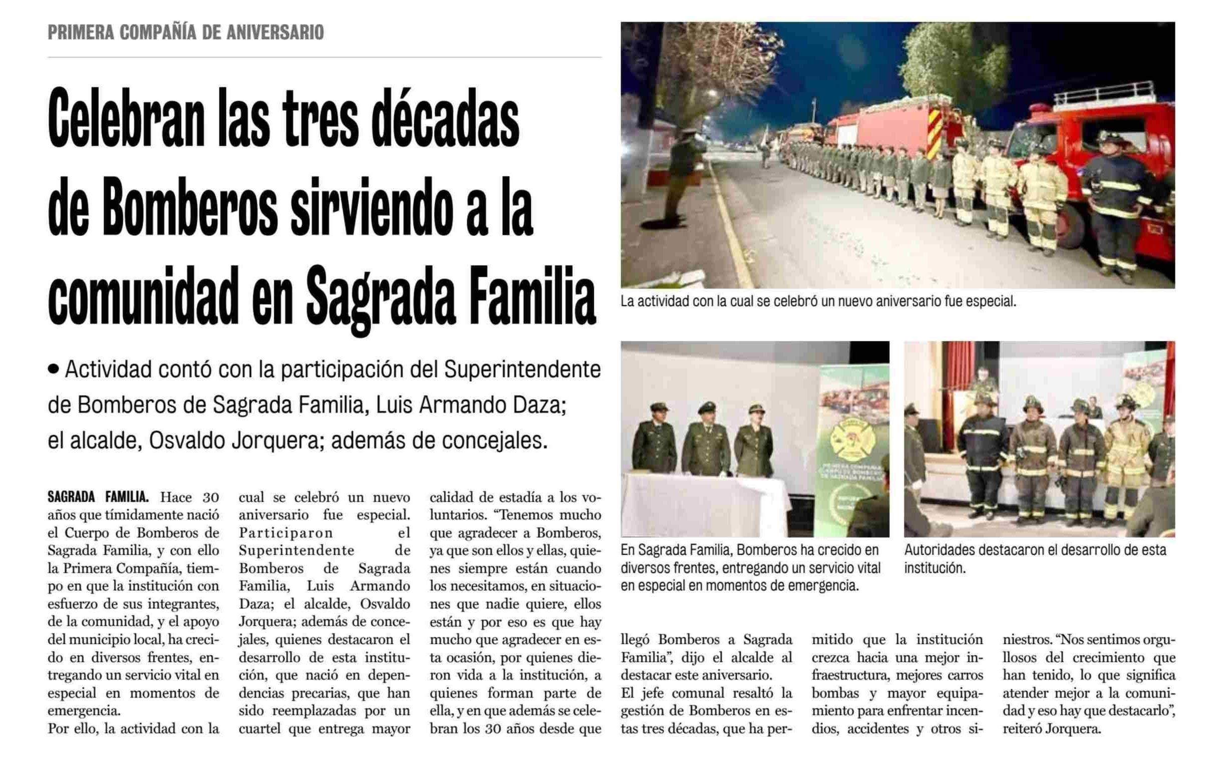 Celebran las tres décadas de Bomberos sirviendo a la comunidad en Sagrada Familia 06-06-2025 La Prensa de Curicó |
