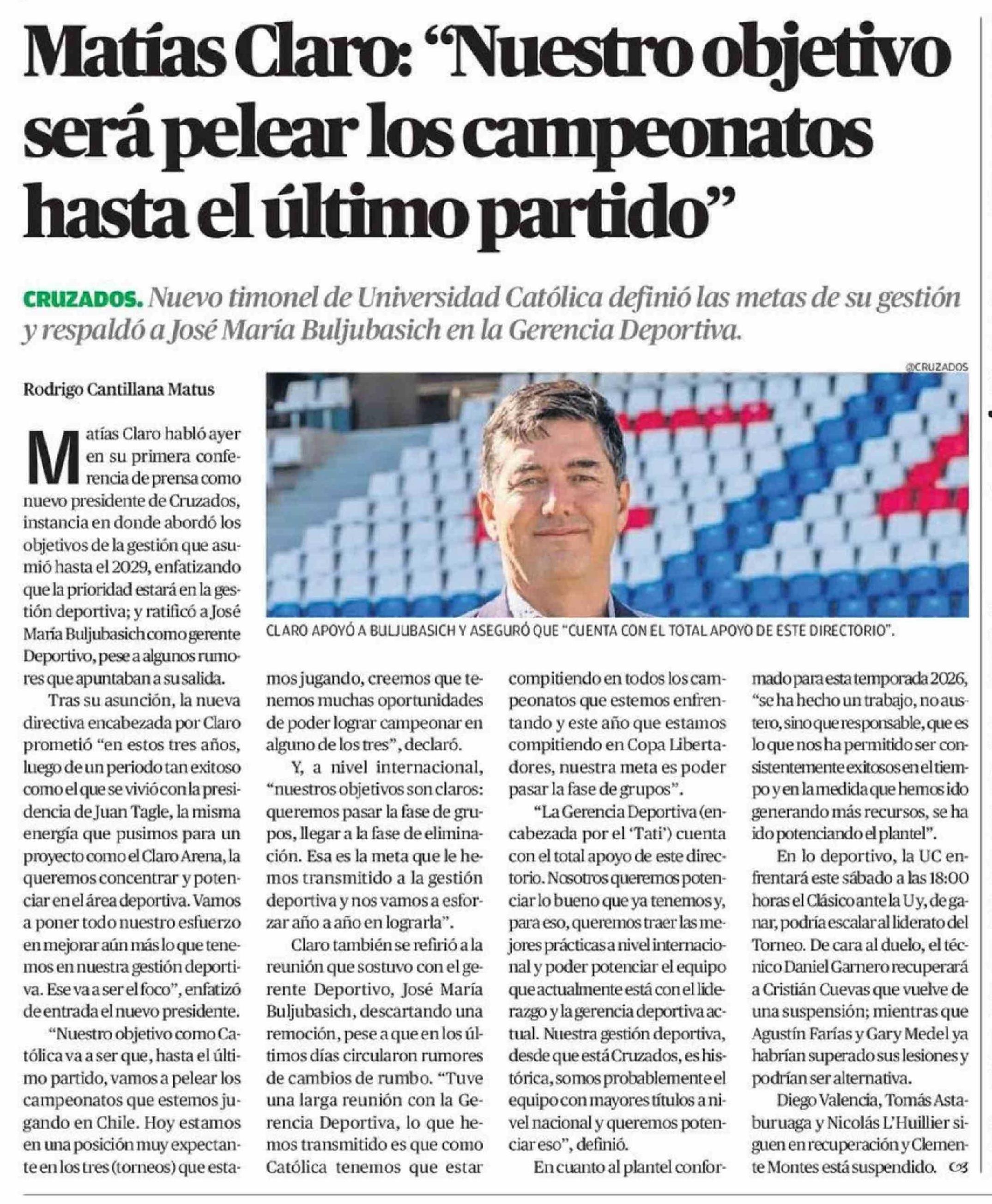 Título: Matías Claro: "Nuestro objetivo será pelear los campeonatos hasta el último partido"