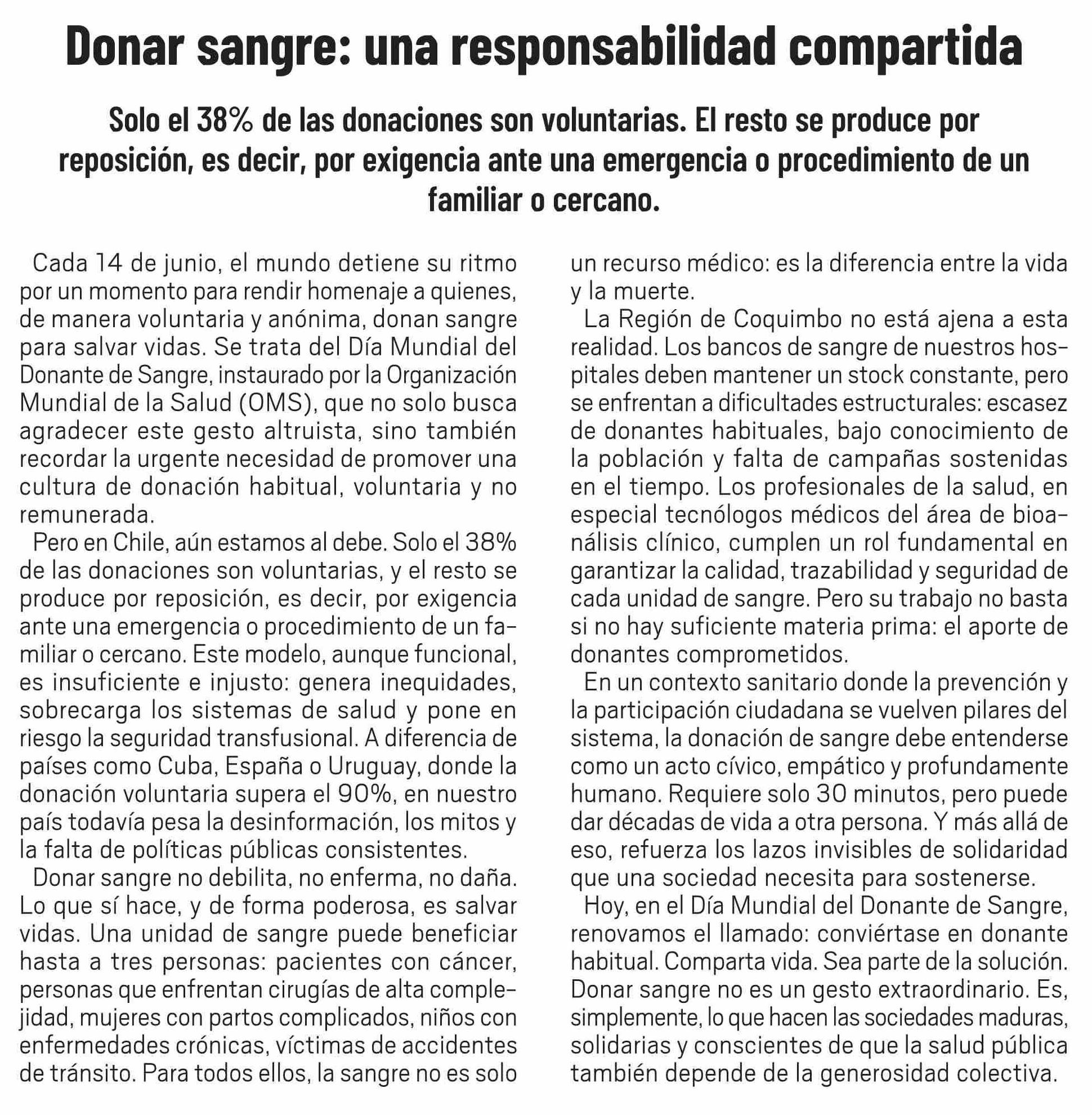 Donar sangre: una responsabilidad compartida 14-06-2025 El Día |