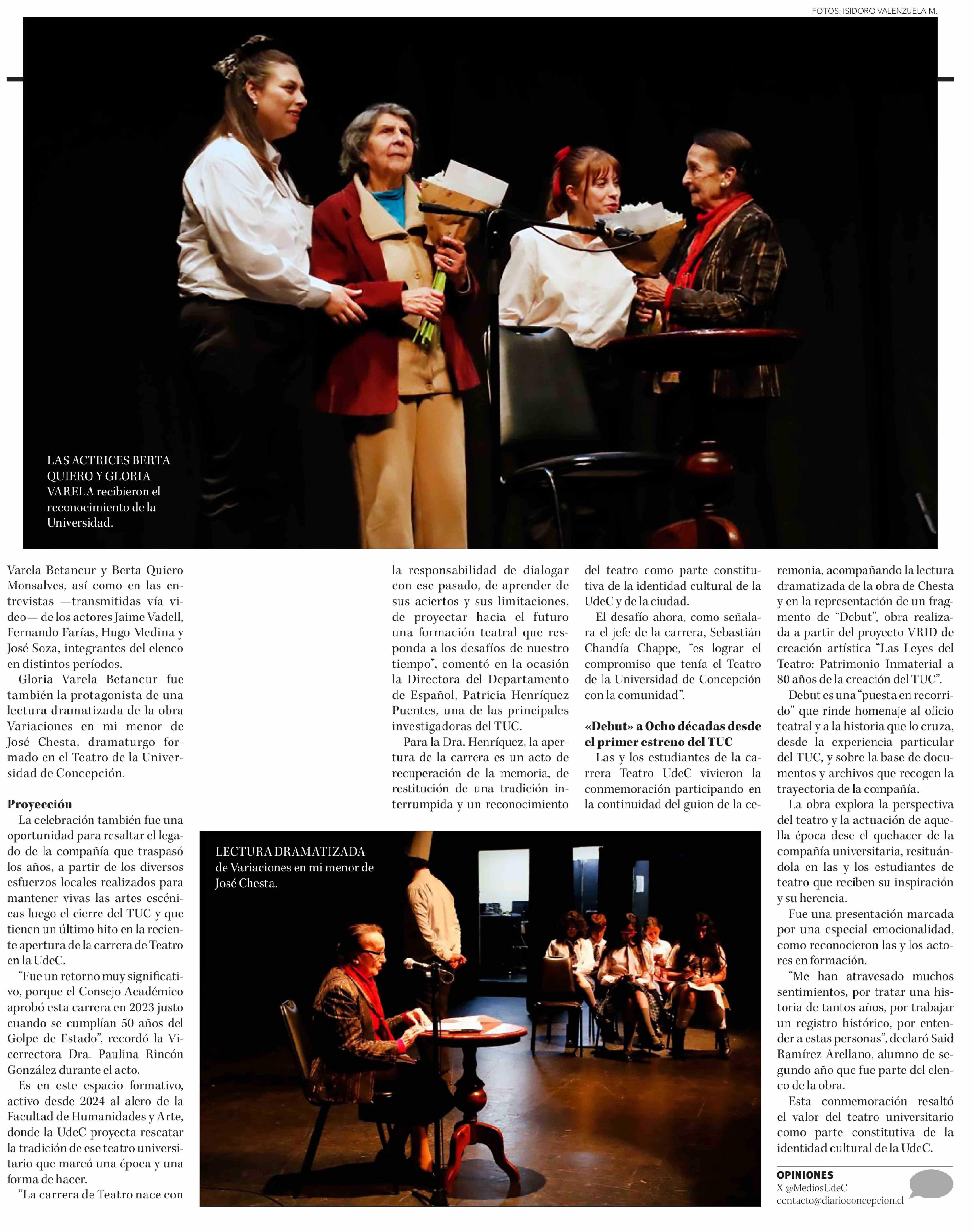 UdeC recordó el primer estreno del TUC, valorando su aporte a la cultura del sur del país 11-02-2026 Diario Concepción |