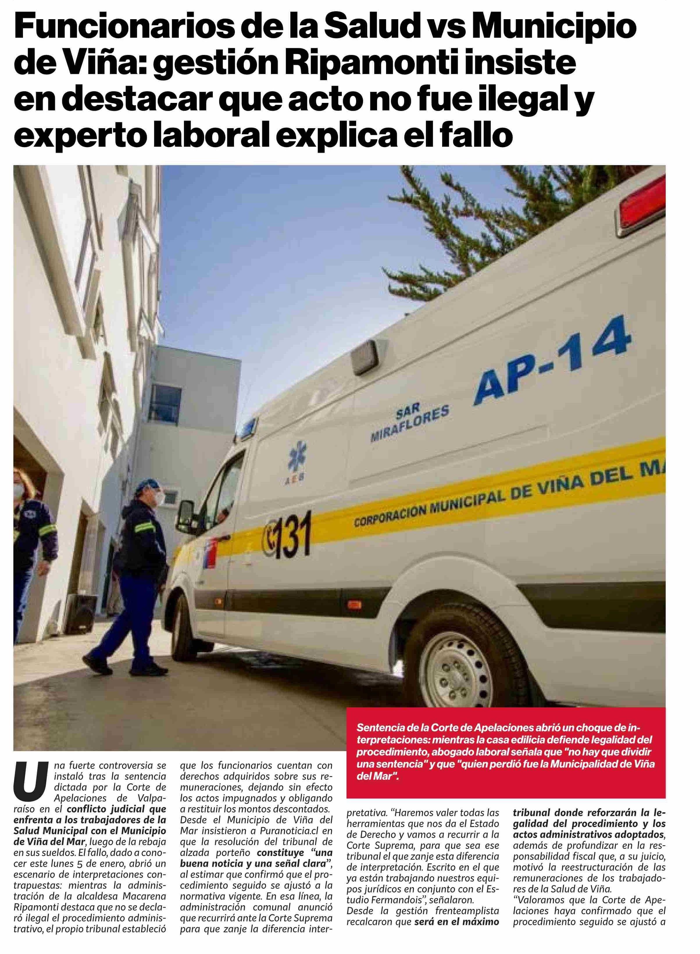 Funcionarios de la Salud vs Municipio de Viña: gestión Ripamonti insiste en destacar que acto no fue ilegal y experto laboral explica el fallo 06-01-2026 Puranoticia.cl |