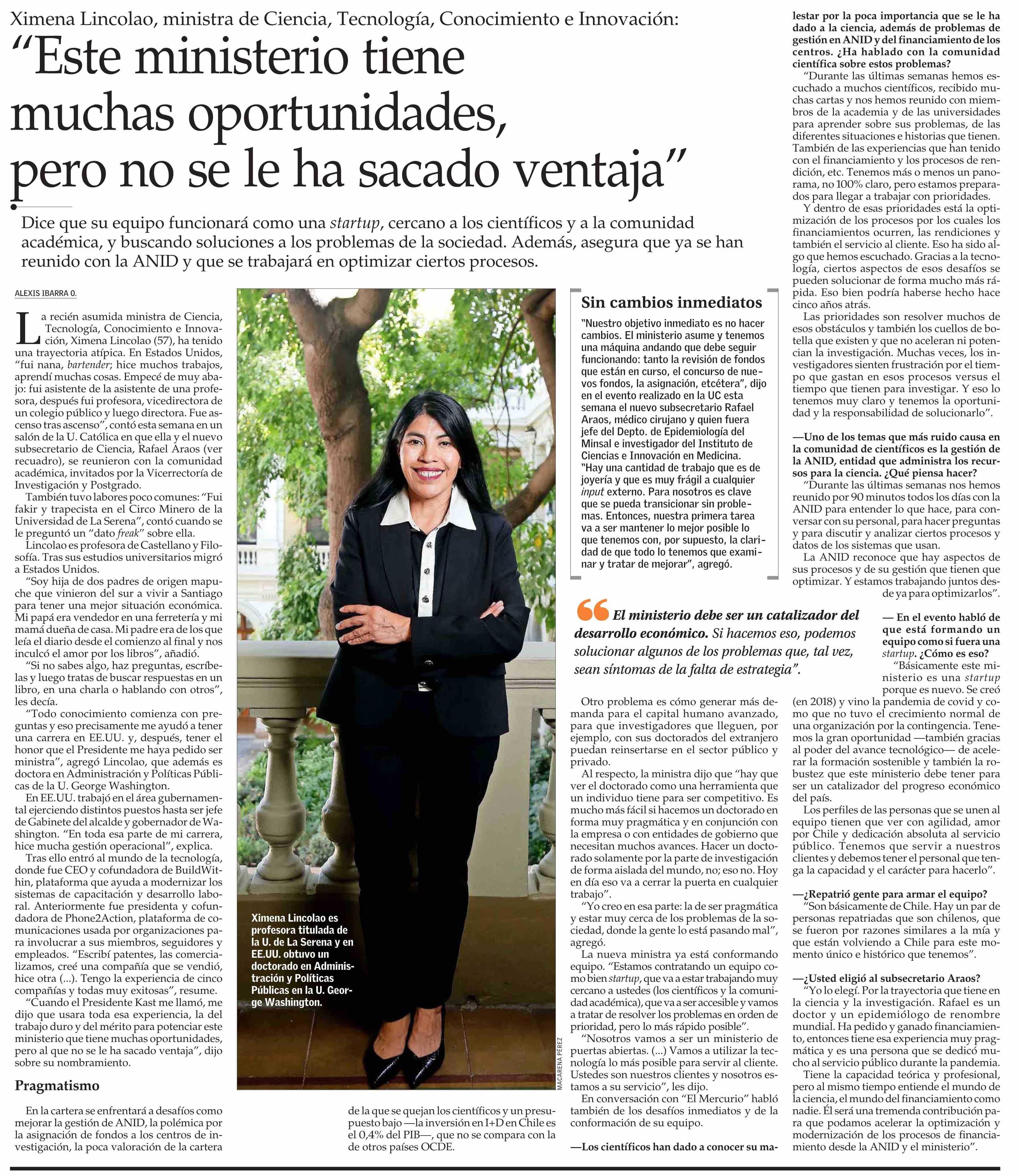 “Este ministerio tiene muchas oportunidades, pero no se le ha sacado ventaja” 12-03-2026 El Mercurio |