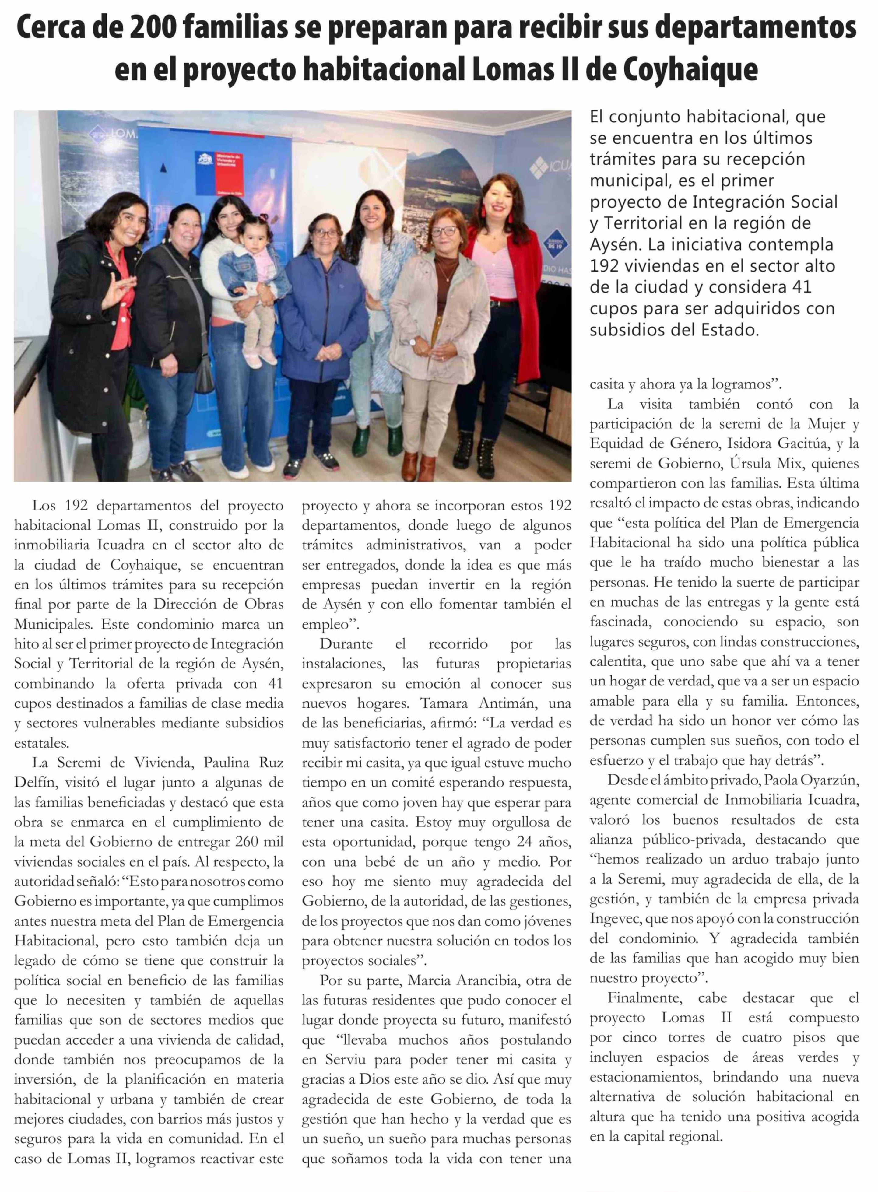 | Título: | Cerca de 200 familias se preparan para recibir sus departamentos en el proyecto habitacional Lomas II de Coyhaique |
