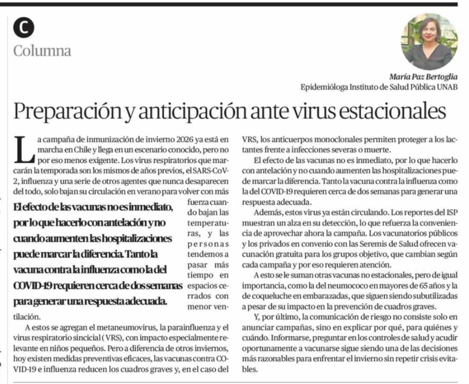 Título: Columnas de Opinión: Preparación y anticipación ante virus estacionales