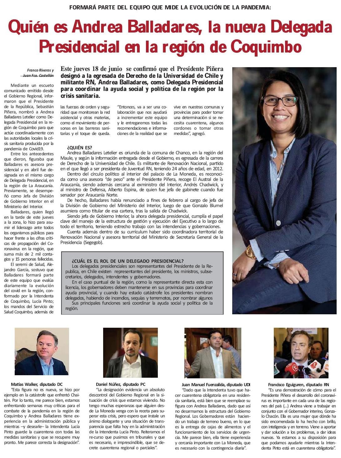 Quién es Andrea Balladares, la nueva Delegada Presidencial en la región de Coquimbo 19-06-2020 Semanario Tiempo |