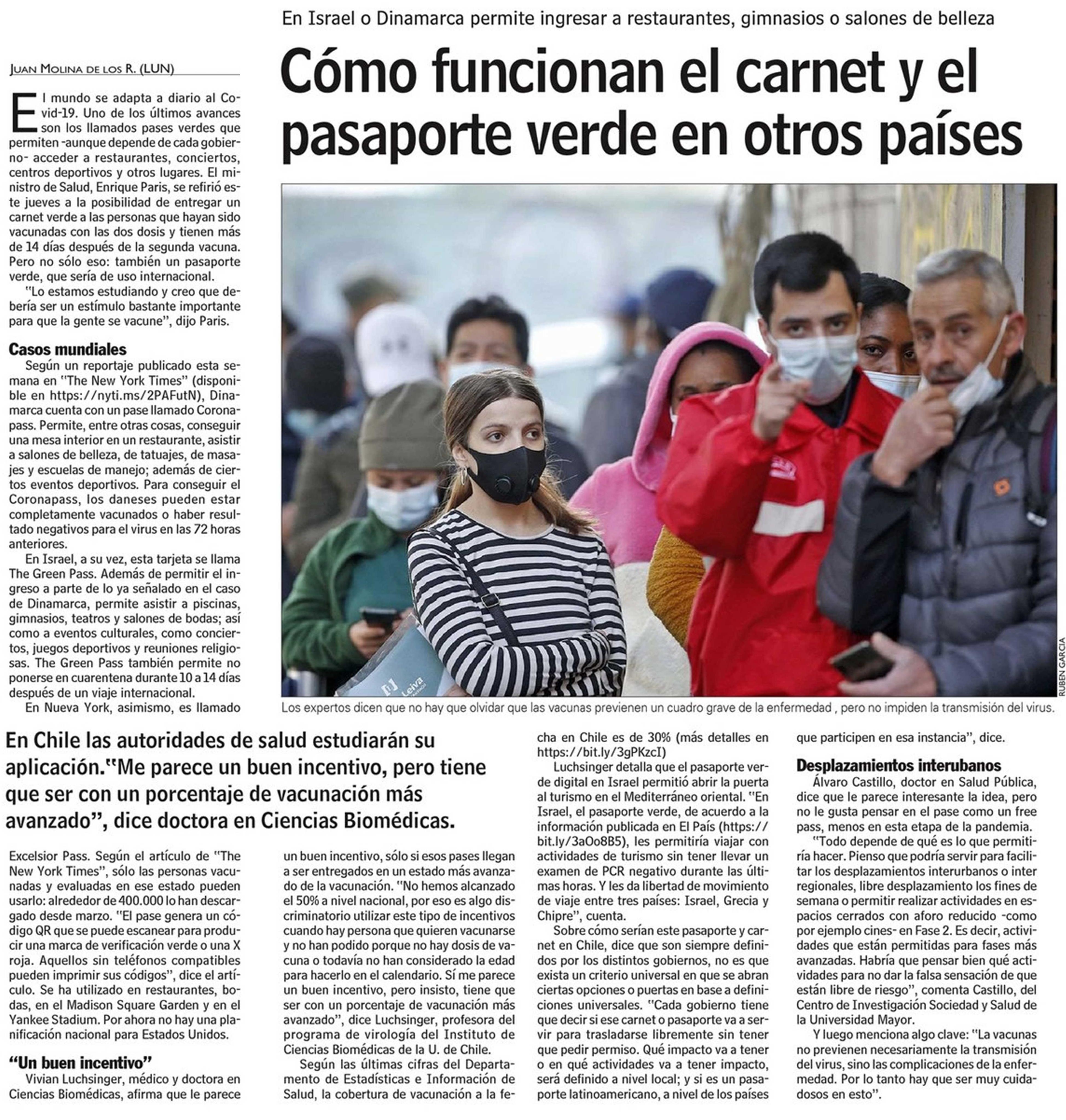 Cómo funcionan el carnet y el pasaporte verde en otros paises 30-04-2021 Las Últimas Noticias |