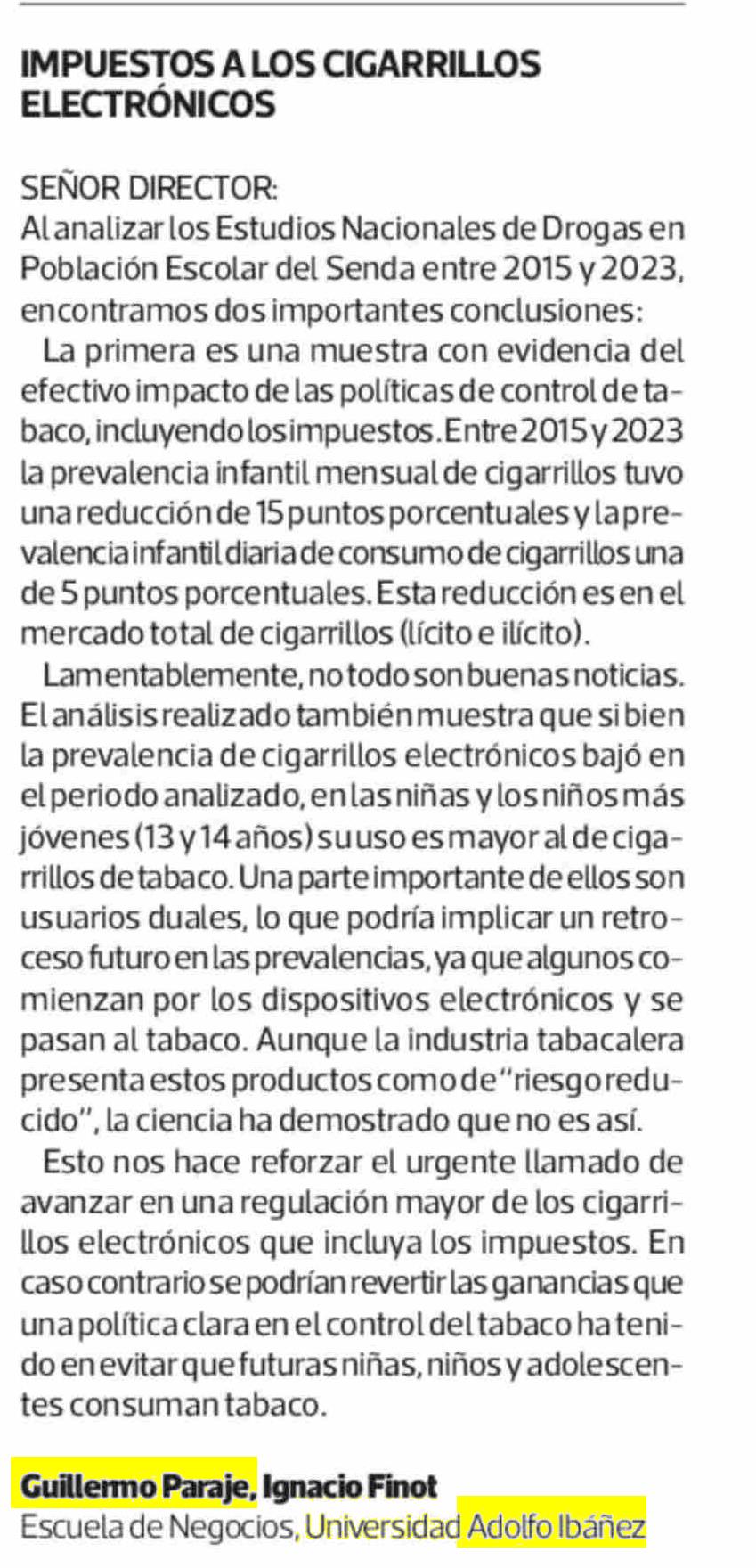 CARTAS: IMPUESTOS A LOS CIGARRILLOS ELECTRÓNICOS 07-04-2025 La Tercera |