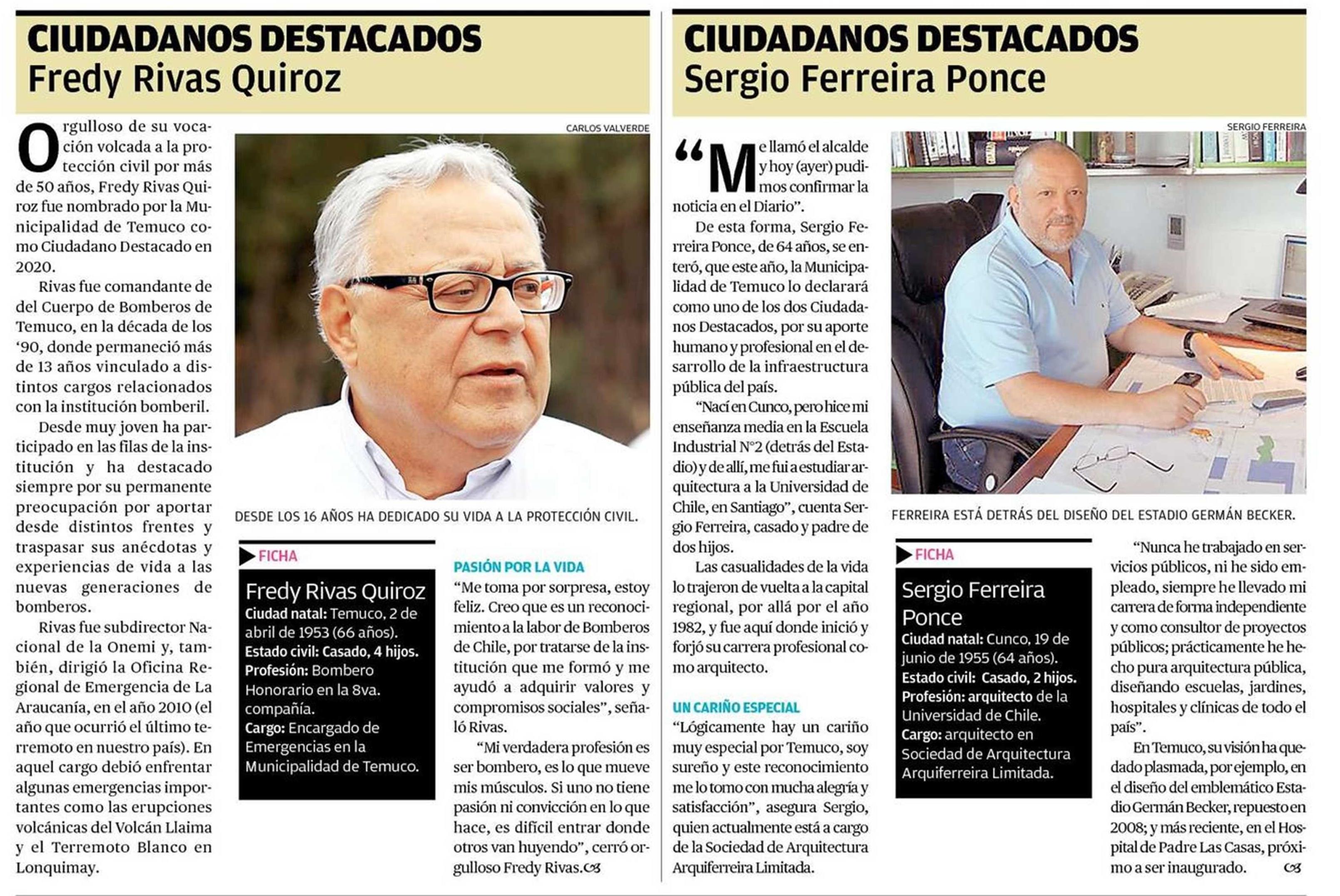 El perfil vocacional” que une a los seis hijos ilustres y ciudadanos destacados de Temuco 06-02-2020 El Austral de la Araucanía |