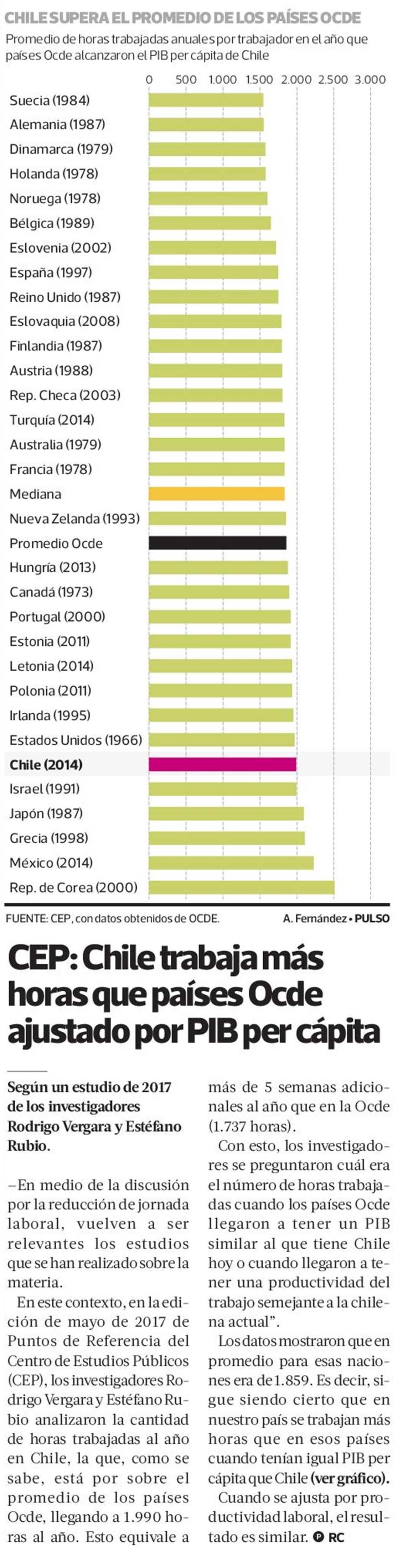 CEP: Chile trabaja más horas que países Ocde ajustado por PIB per cápita
