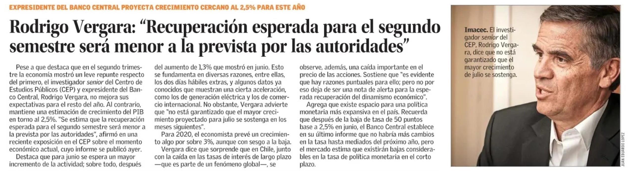 | Título: | Rodrigo Vergara: “Recuperación esperada para el segundo semestre será menor a la prevista por las autoridades” |