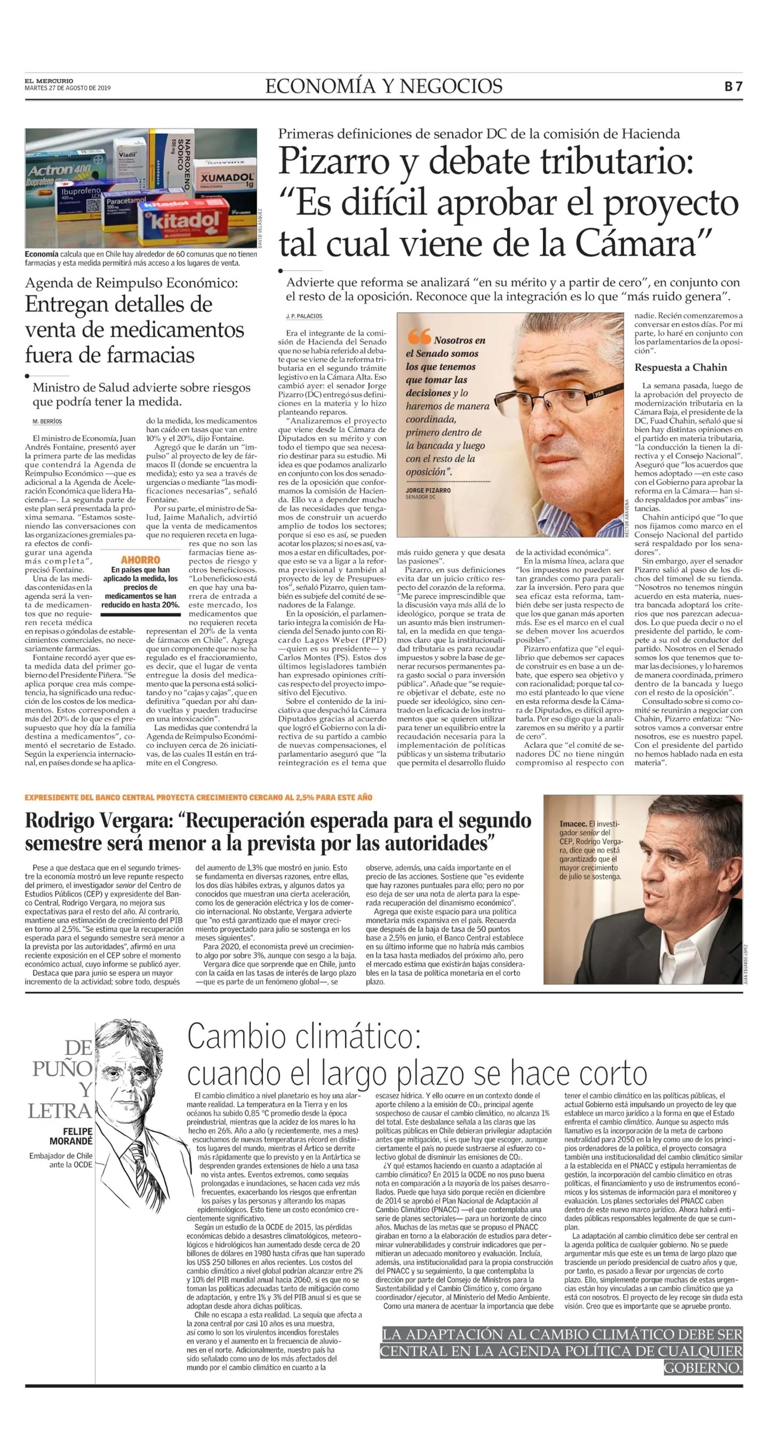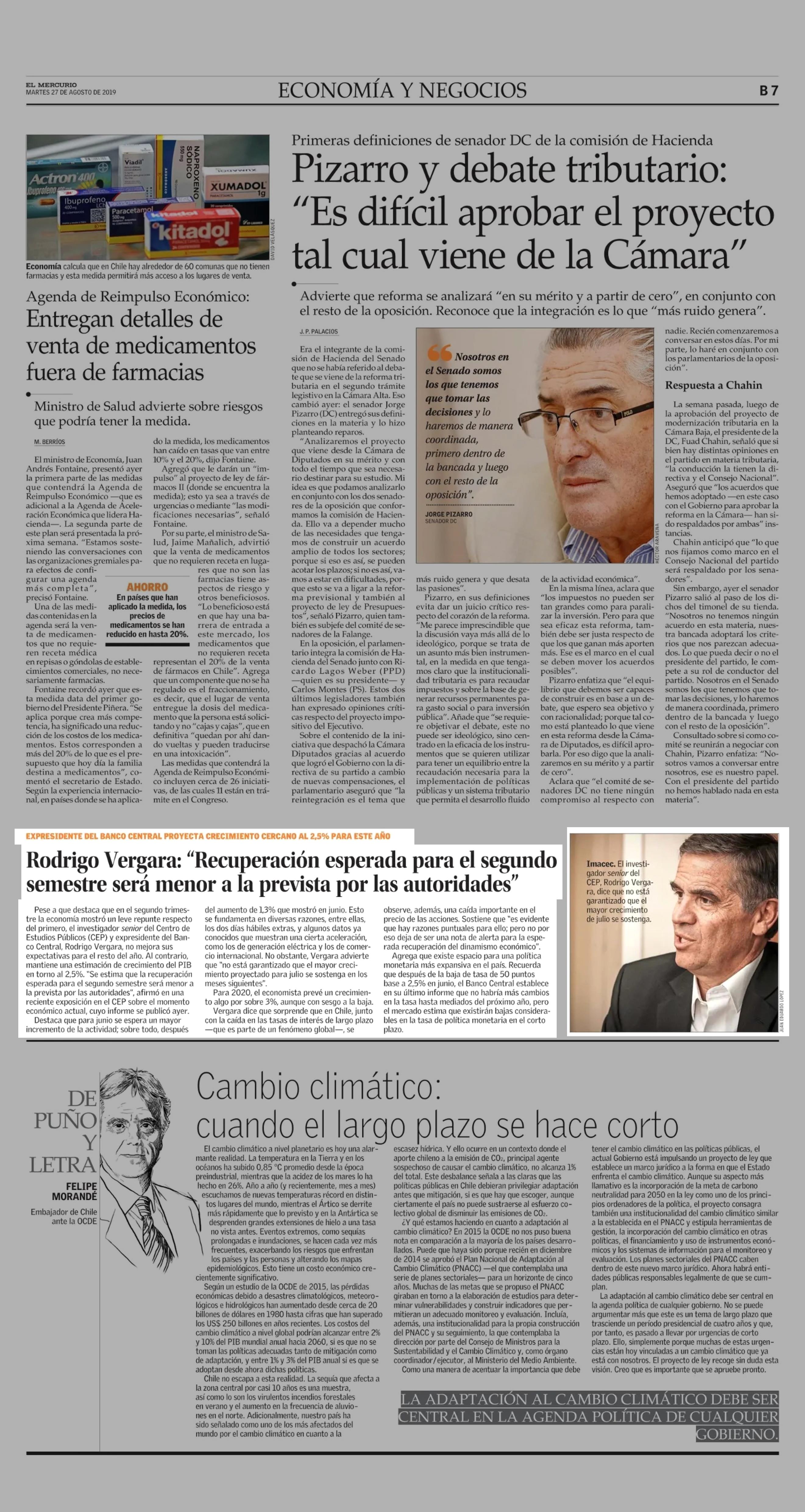 Rodrigo Vergara: “Recuperación esperada para el segundo semestre será menor a la prevista por las autoridades” 27/08/2019 El Mercurio EXPRESIDENTE DEL BANCO CENTRAL PROYECTA CRECIMIENTO CERCANO AL 2, 5% PARA ESTE AÑO Rodrigo Vergara: “Recuperación esperada para el segundo semestre será menor a la prevista por las autoridad... |
