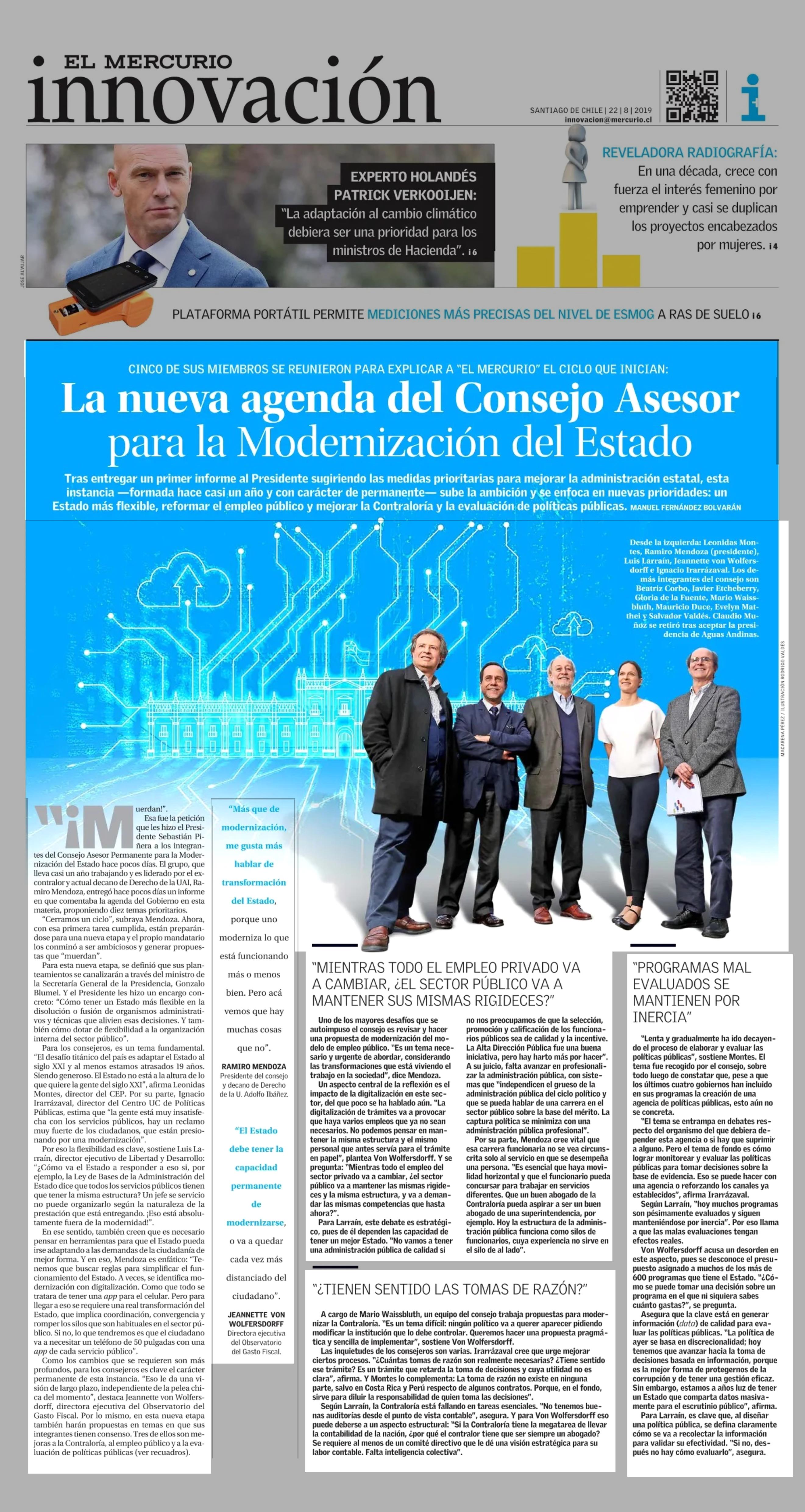 La nueva agenda del consejo Asesor para la Modernización del Estado 22/08/2019 El Mercurio ARAU La nueva agenda del consejo Asesor para la Modernización del Estado ERE o SSA Esa fue la petición que les hizo el Presidente Sebastián Piñera a los integrantes del Consejo ... |
