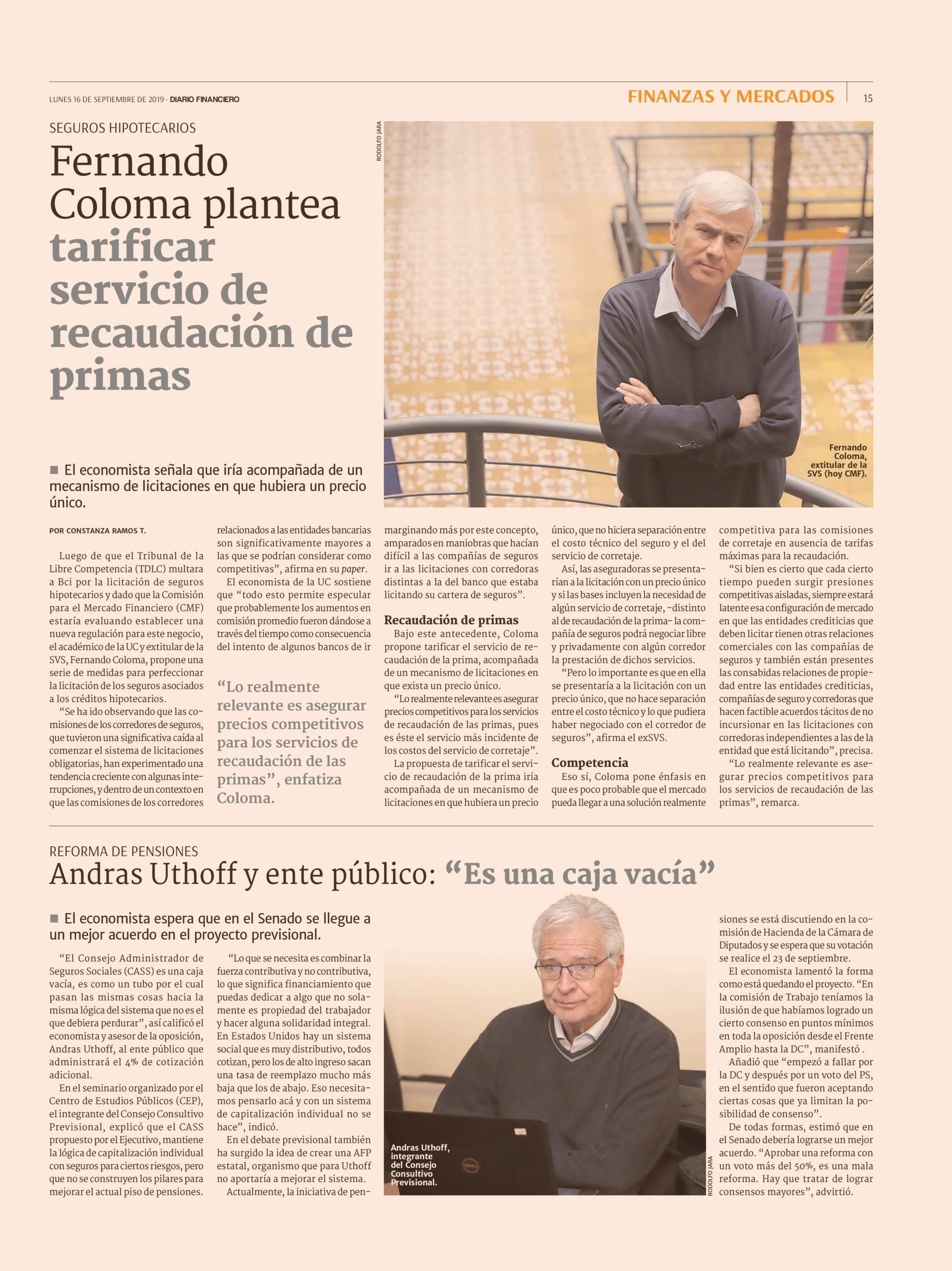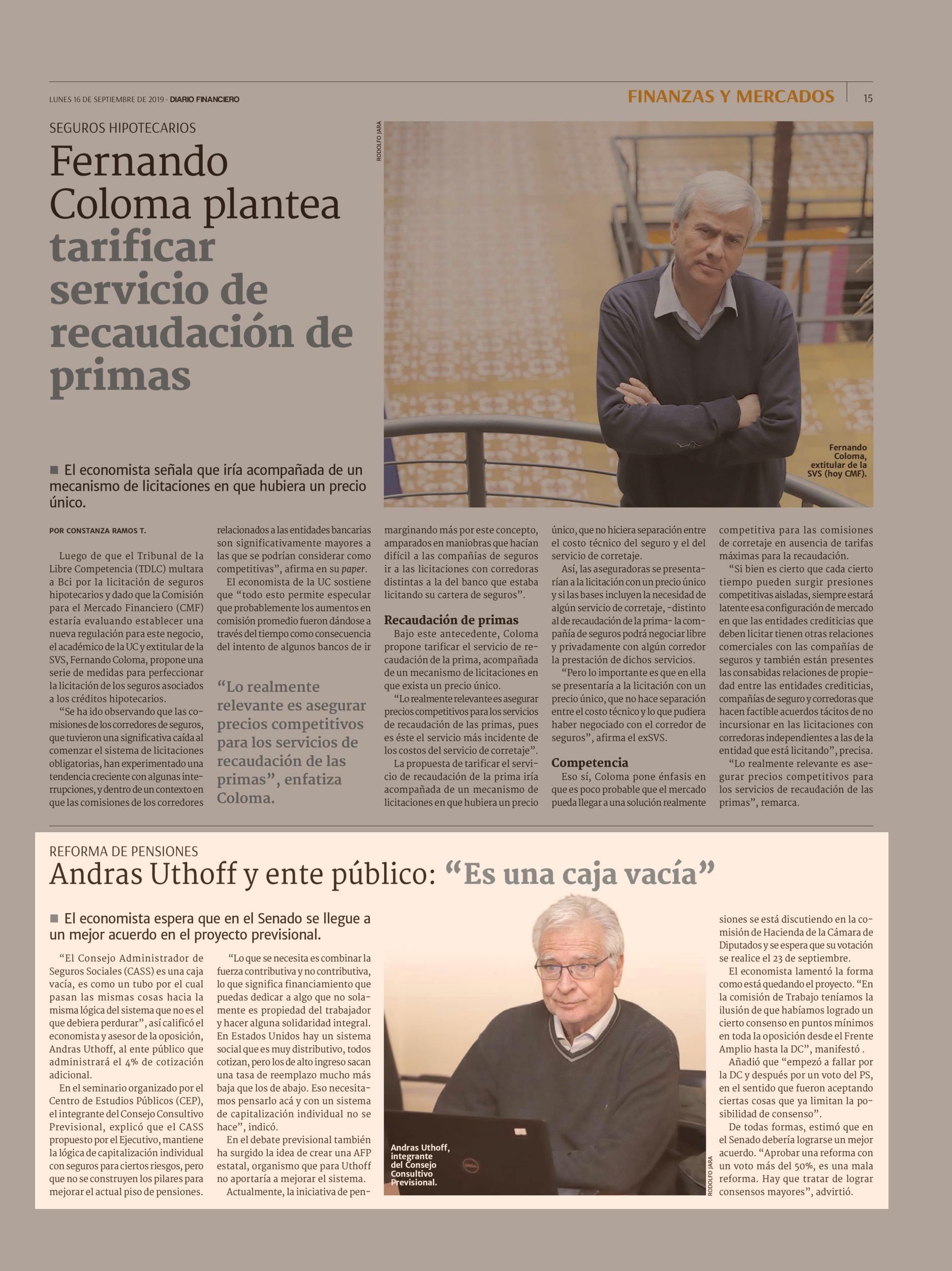 Andras Uthoff y ente público: “Es una caja vacía” 16/09/2019 Diario Financiero REFORMA DF Andras Uthoff y ente público: “Es una caja vacía” 1 El economista espera que en el Senado se llegue a un mejor acuerdo en el proyecto previsional. “El Consejo Adminis... |