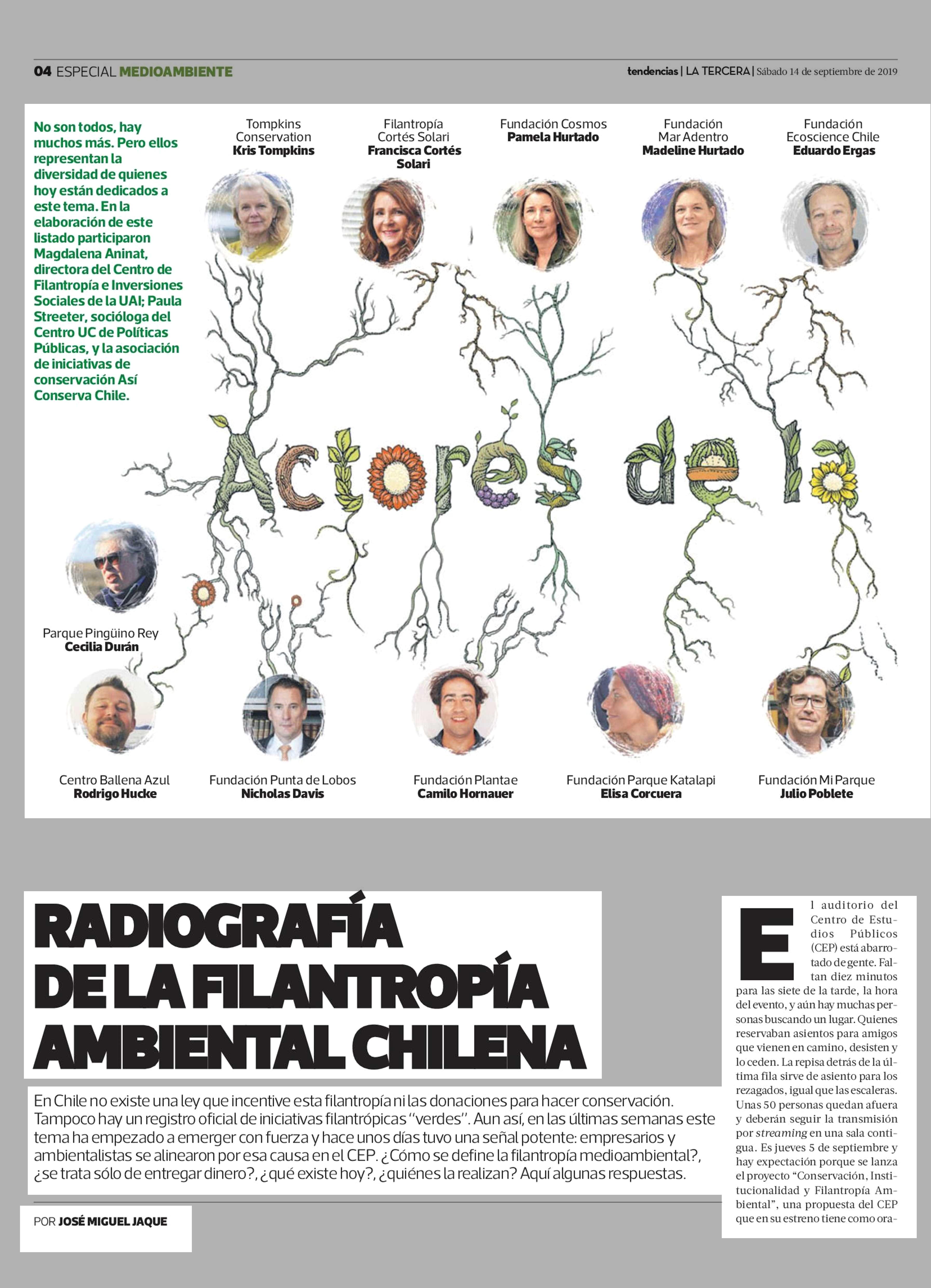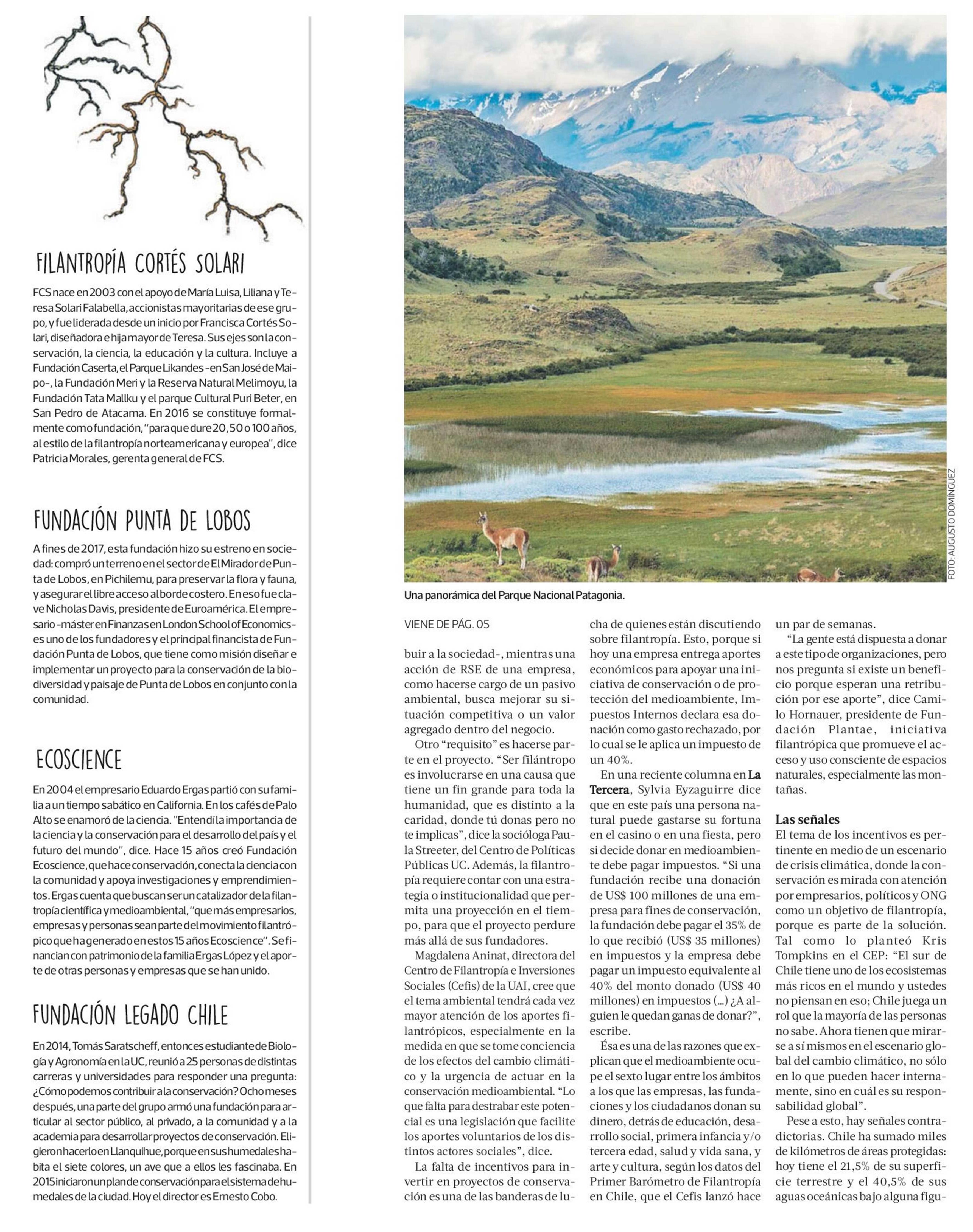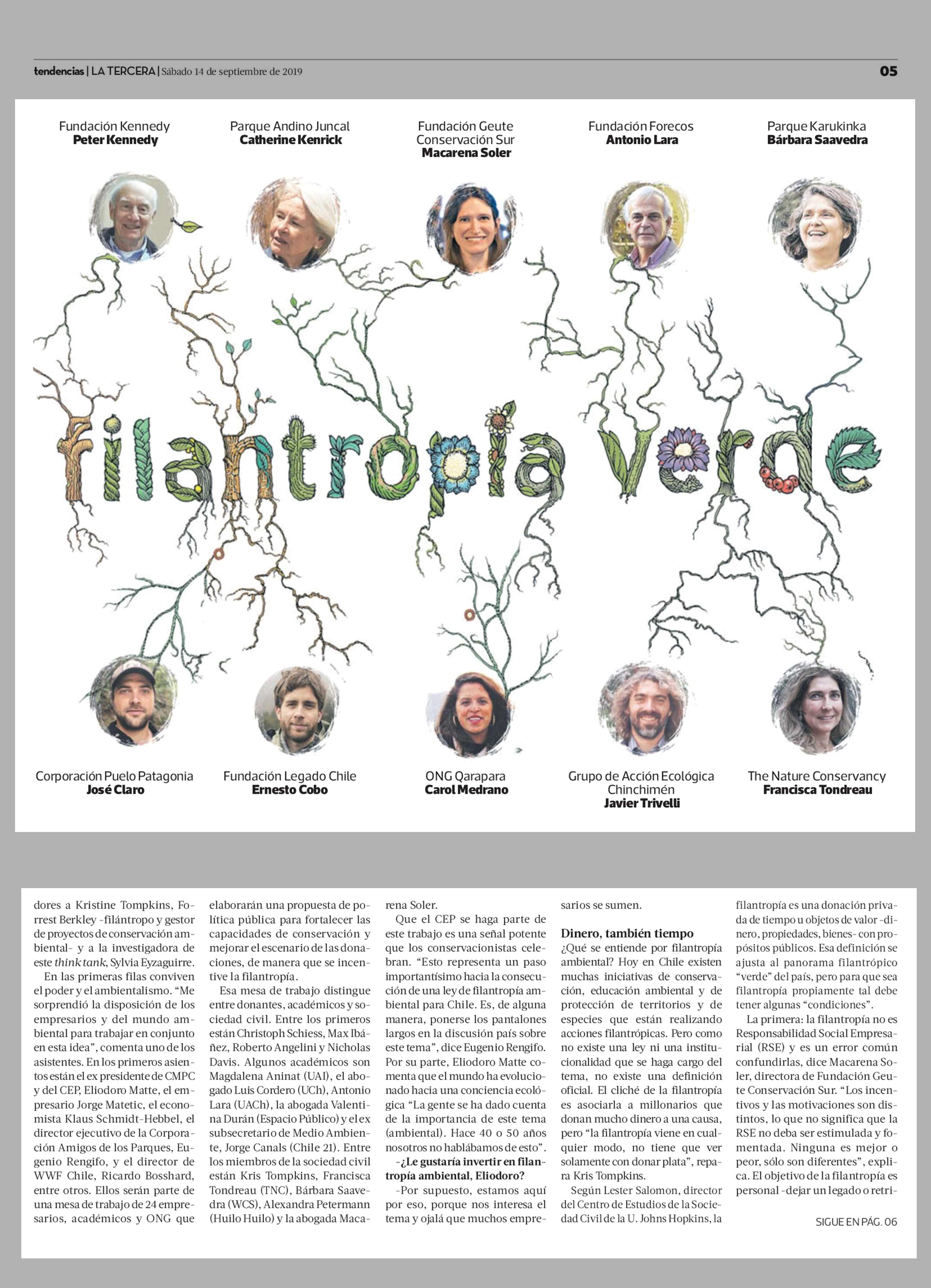 RADIOGRAFÍA DELA FILANTROPÍA AMBIENTAL CHILENA 14/09/2019 La Tercera RADIOGRAFÍA DELA FILANTROPÍA AMBIENTAL CHILENA En Chile no existe una ley que incentive esta filantropía nilas donaciones para hacer conservación. Tampoco hay un registro oficial de i... |