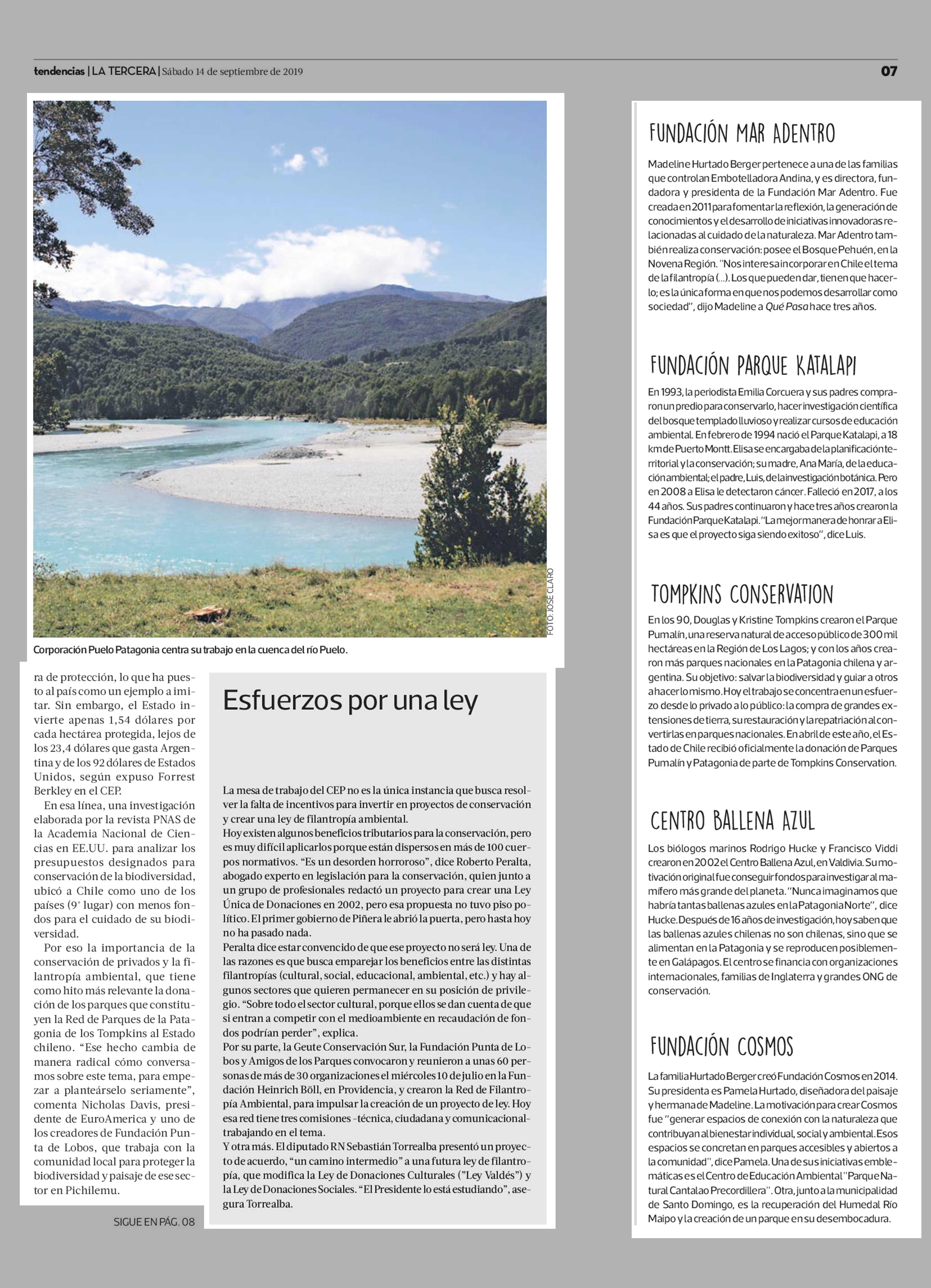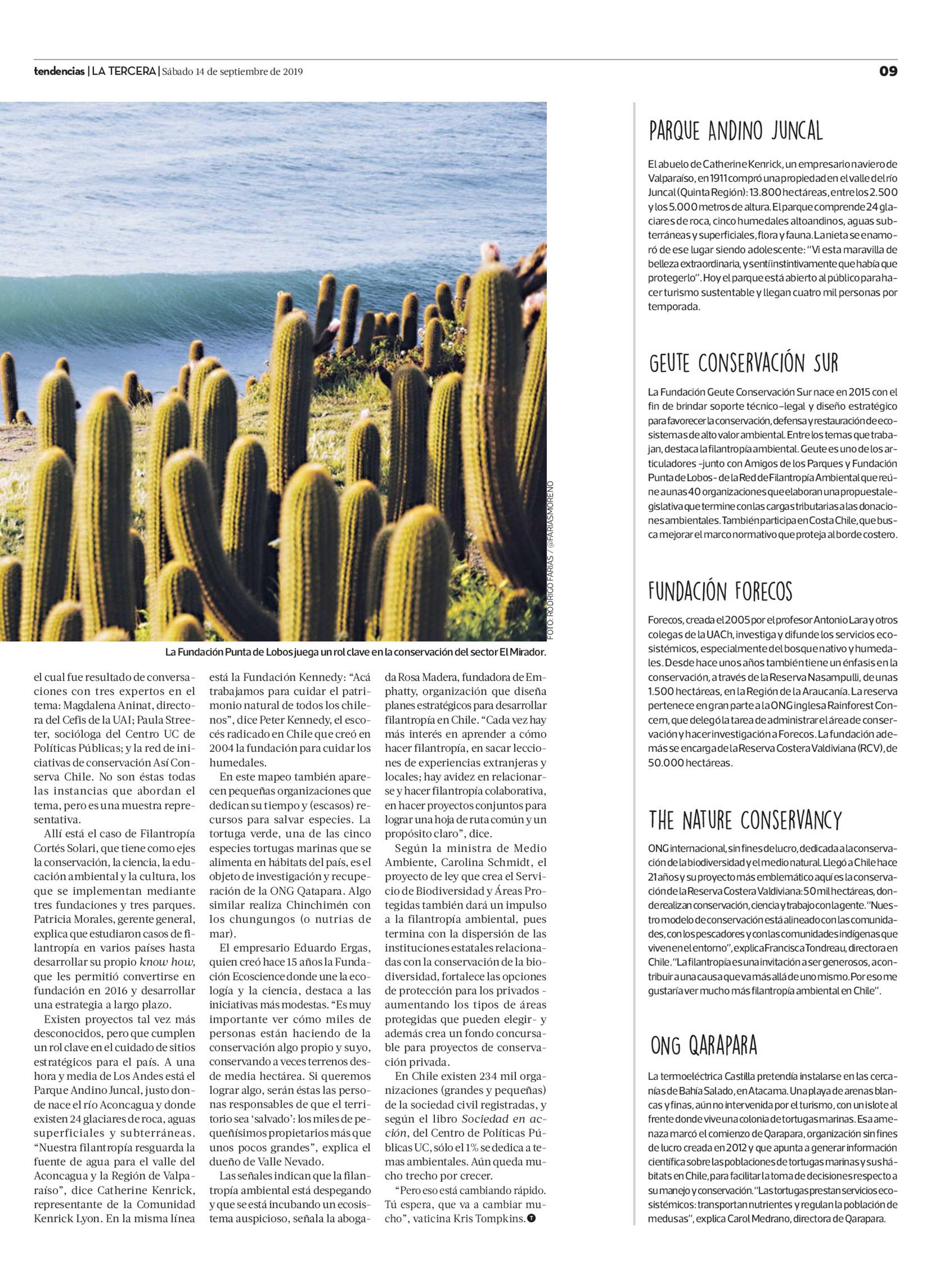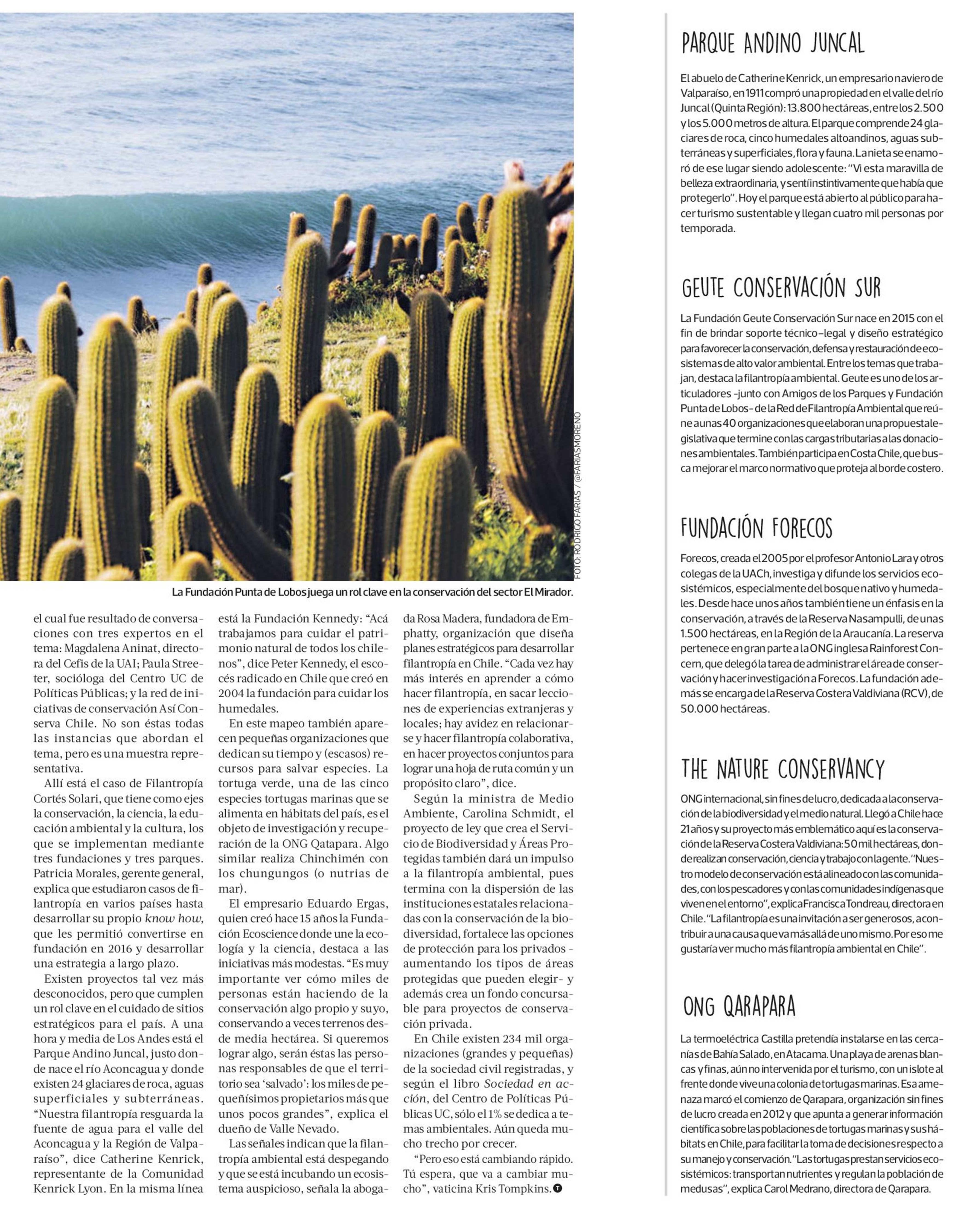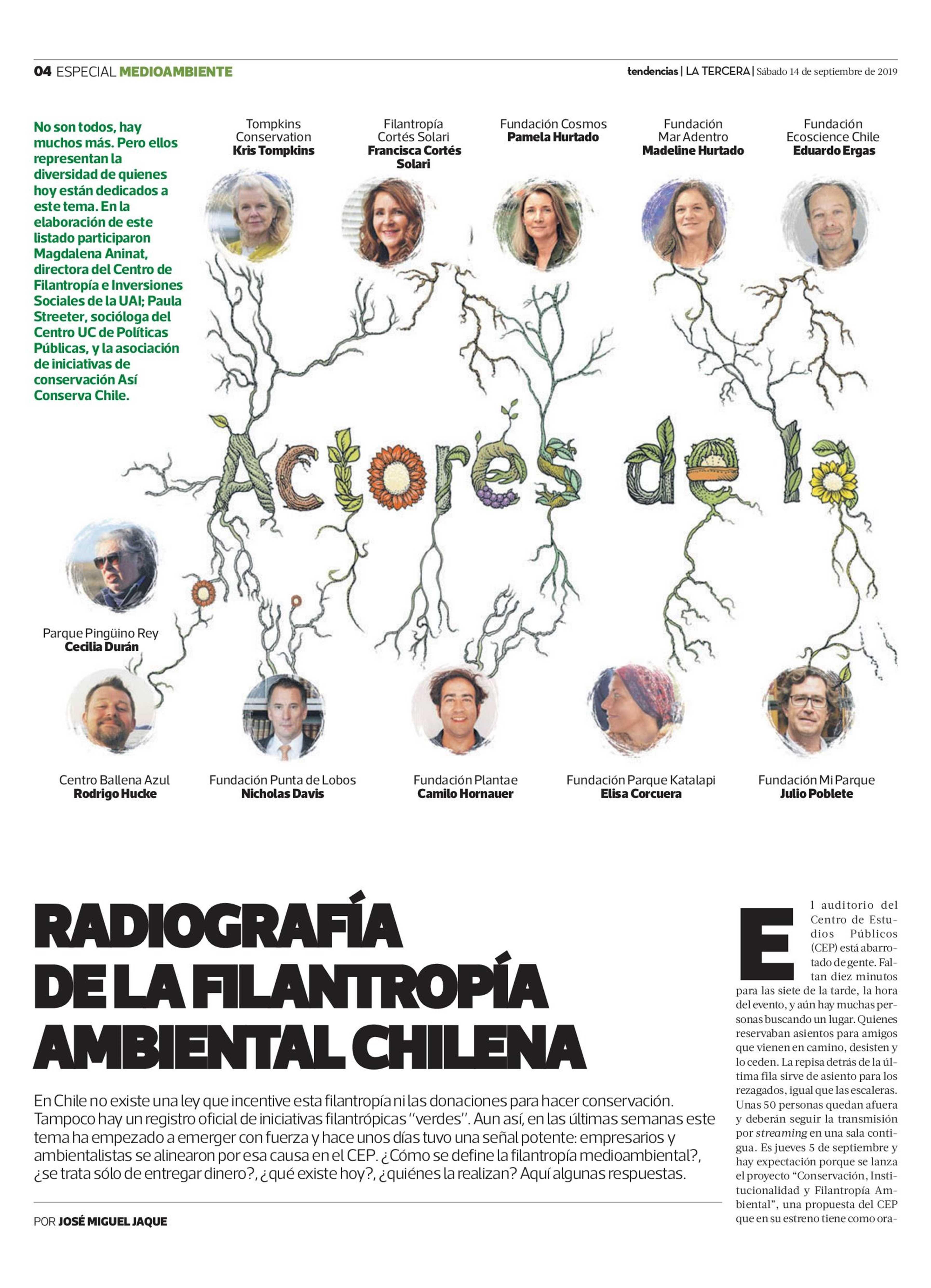 RADIOGRAFÍA DELA FILANTROPÍA AMBIENTAL CHILENA 14/09/2019 La Tercera RADIOGRAFÍA DELA FILANTROPÍA AMBIENTAL CHILENA En Chile no existe una ley que incentive esta filantropía nilas donaciones para hacer conservación. Tampoco hay un registro oficial de i... |