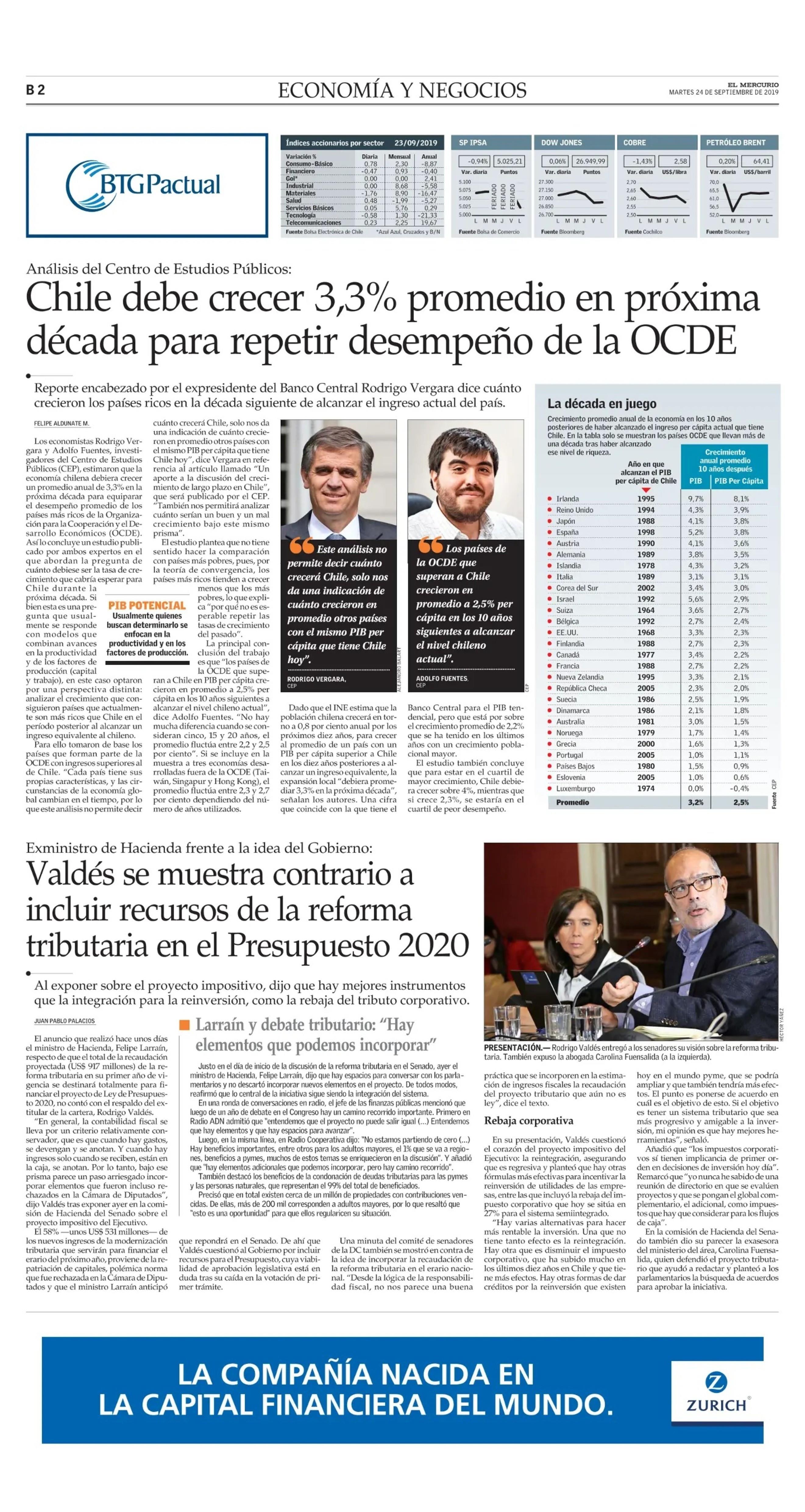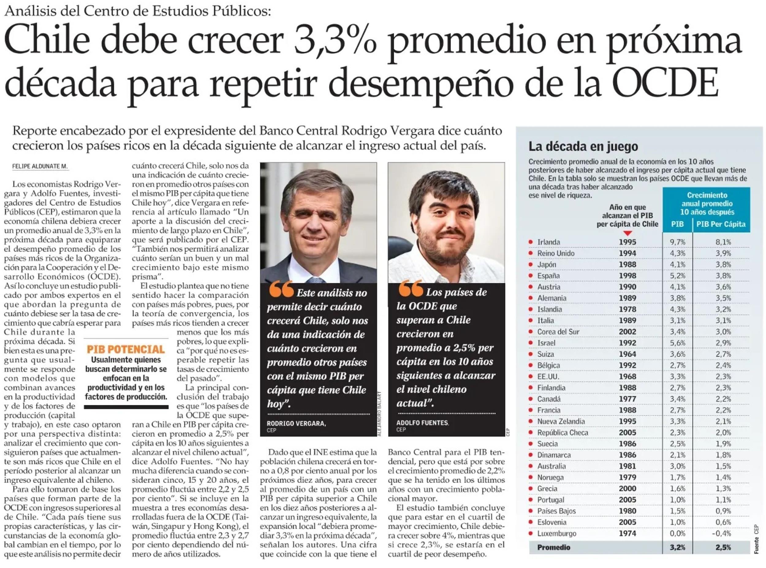 Chile debe crecer 3, 3% promedio en próxima década para repetir desempeño de la OCDE