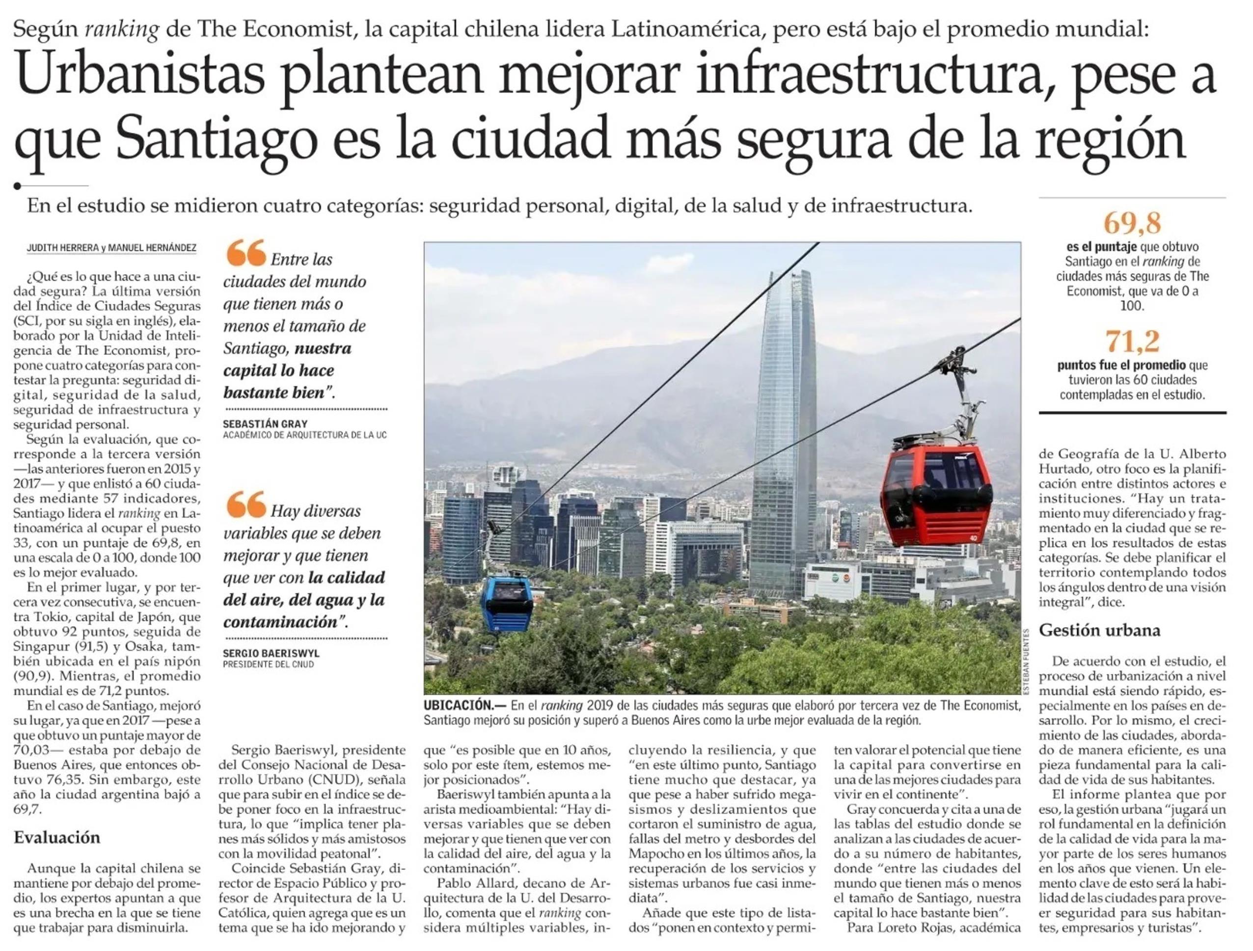 Urbanistas plantean mejorar infraestructura, pese a que Santiago es la ciudad más segura de la región