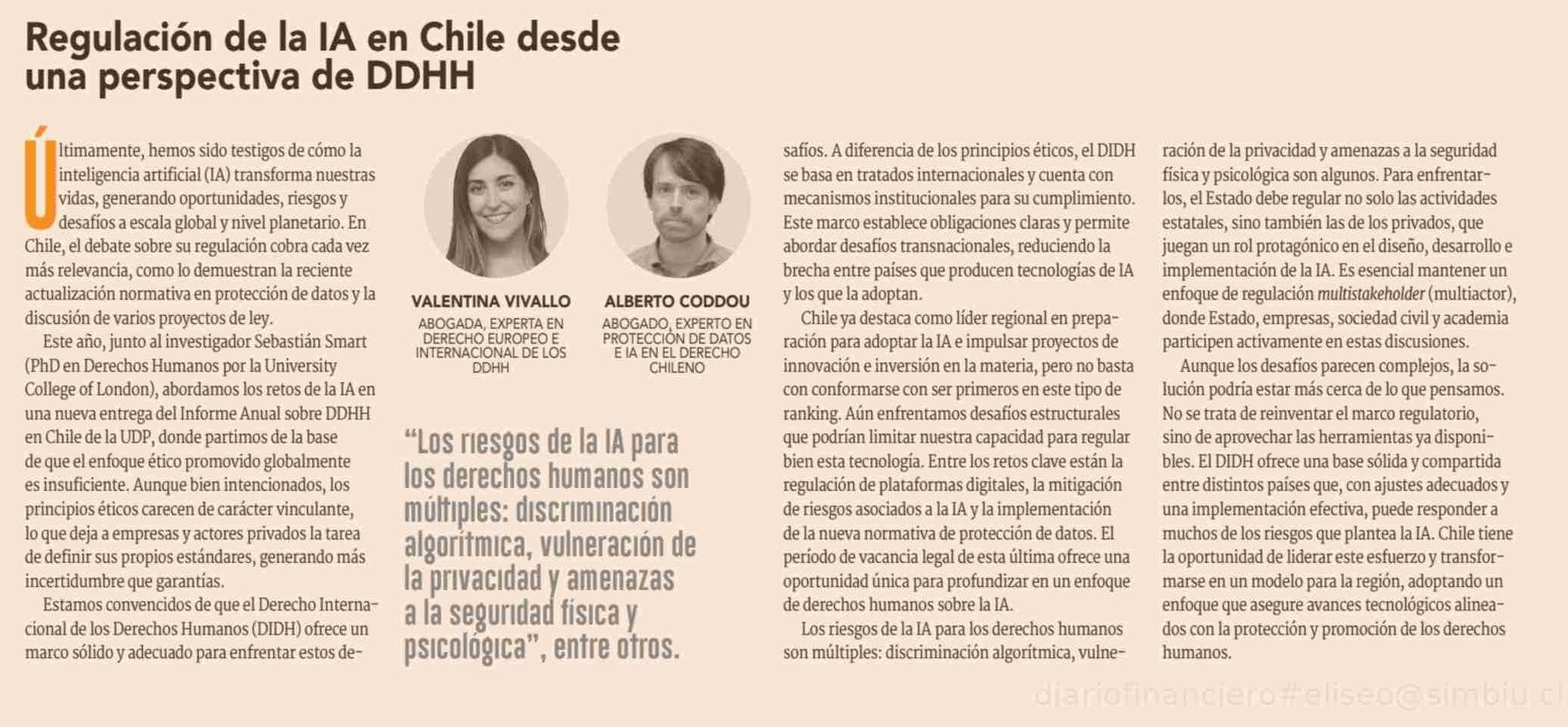 COLUMNAS DE OPINIÓN: Regulación de la lA en Chile desde una perspectiva de DDHH