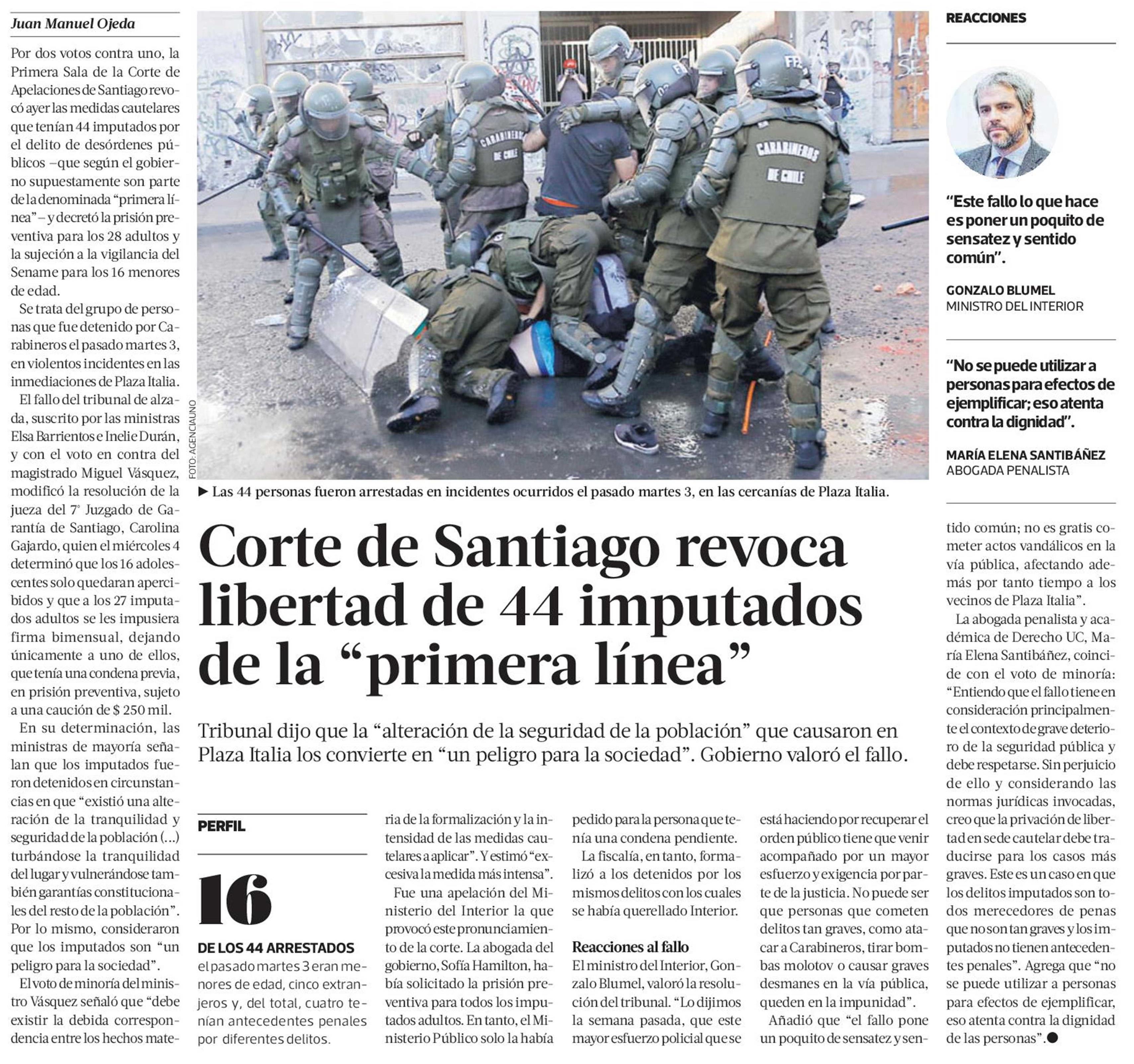 Corte de Santiago revoca libertad de 44 imputados de la “primera línea”