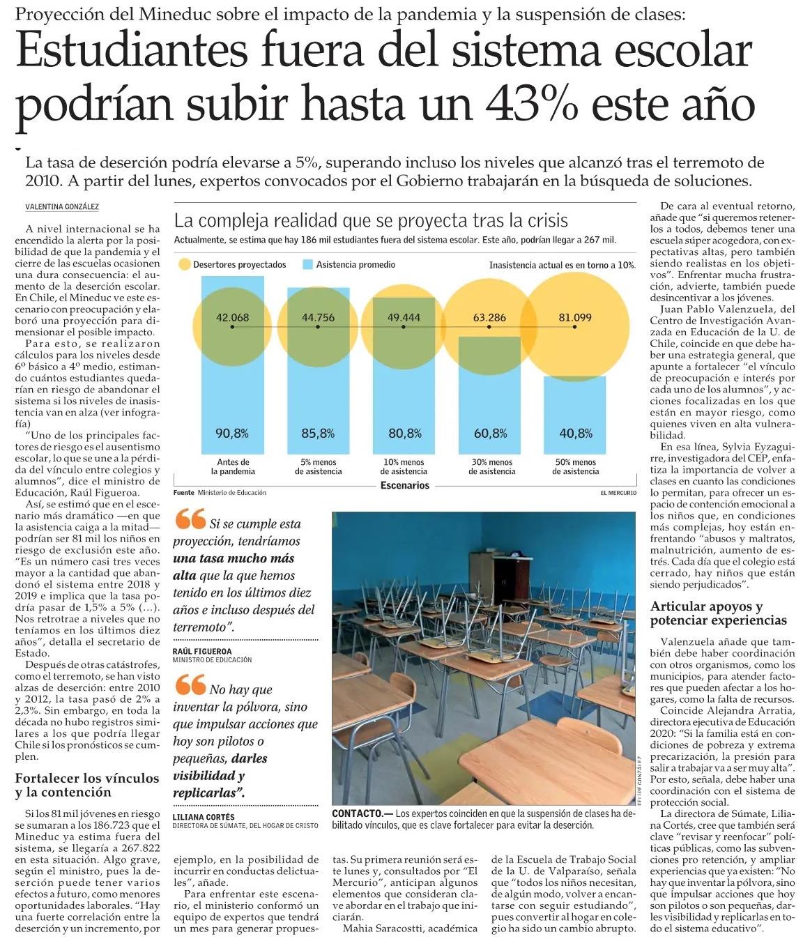 Estudiantes fuera del sistema escolar podrían subir hasta un 43% este año