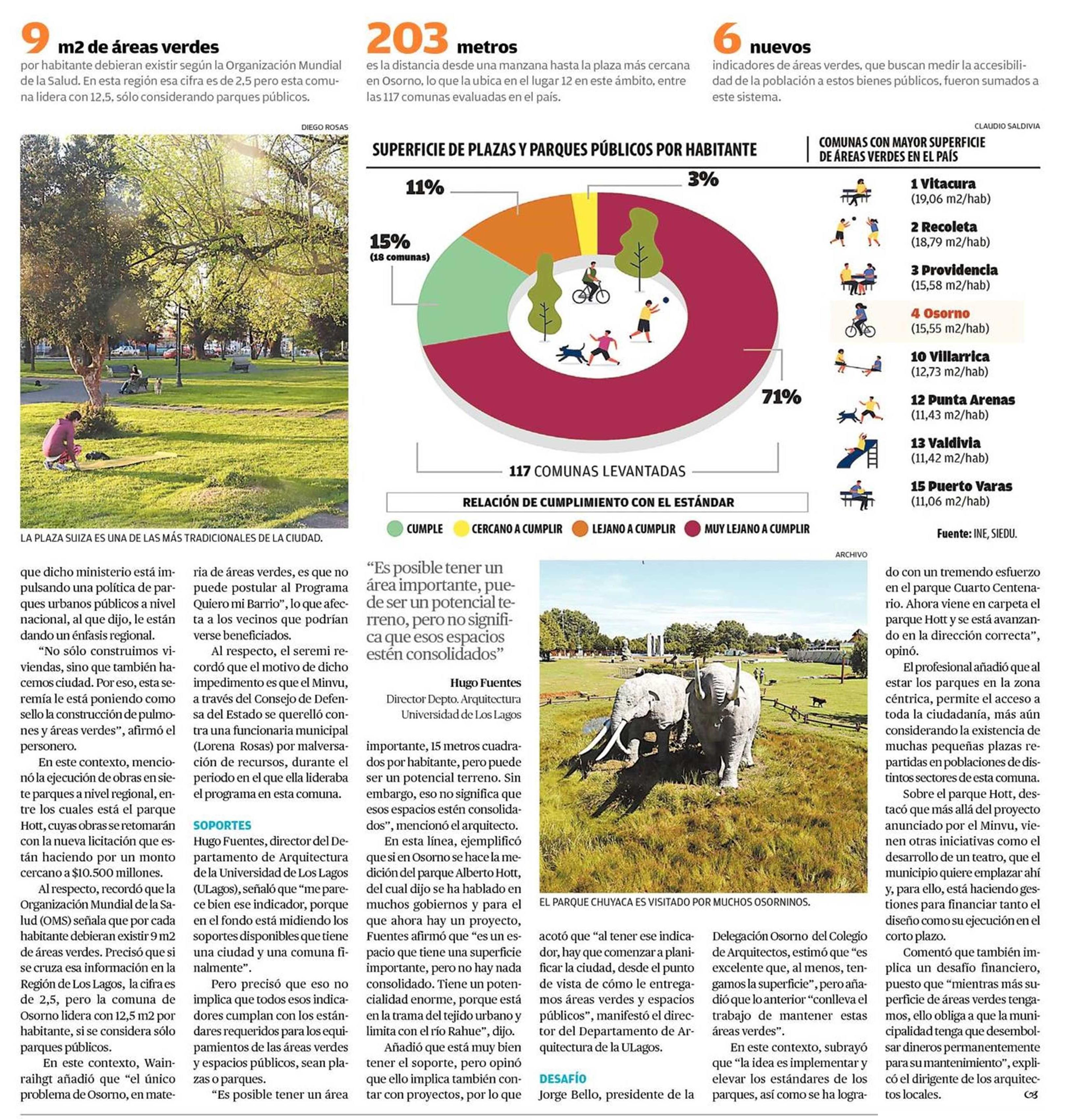 Osorno ocupa el cuarto lugar con más superficie de áreas verdes