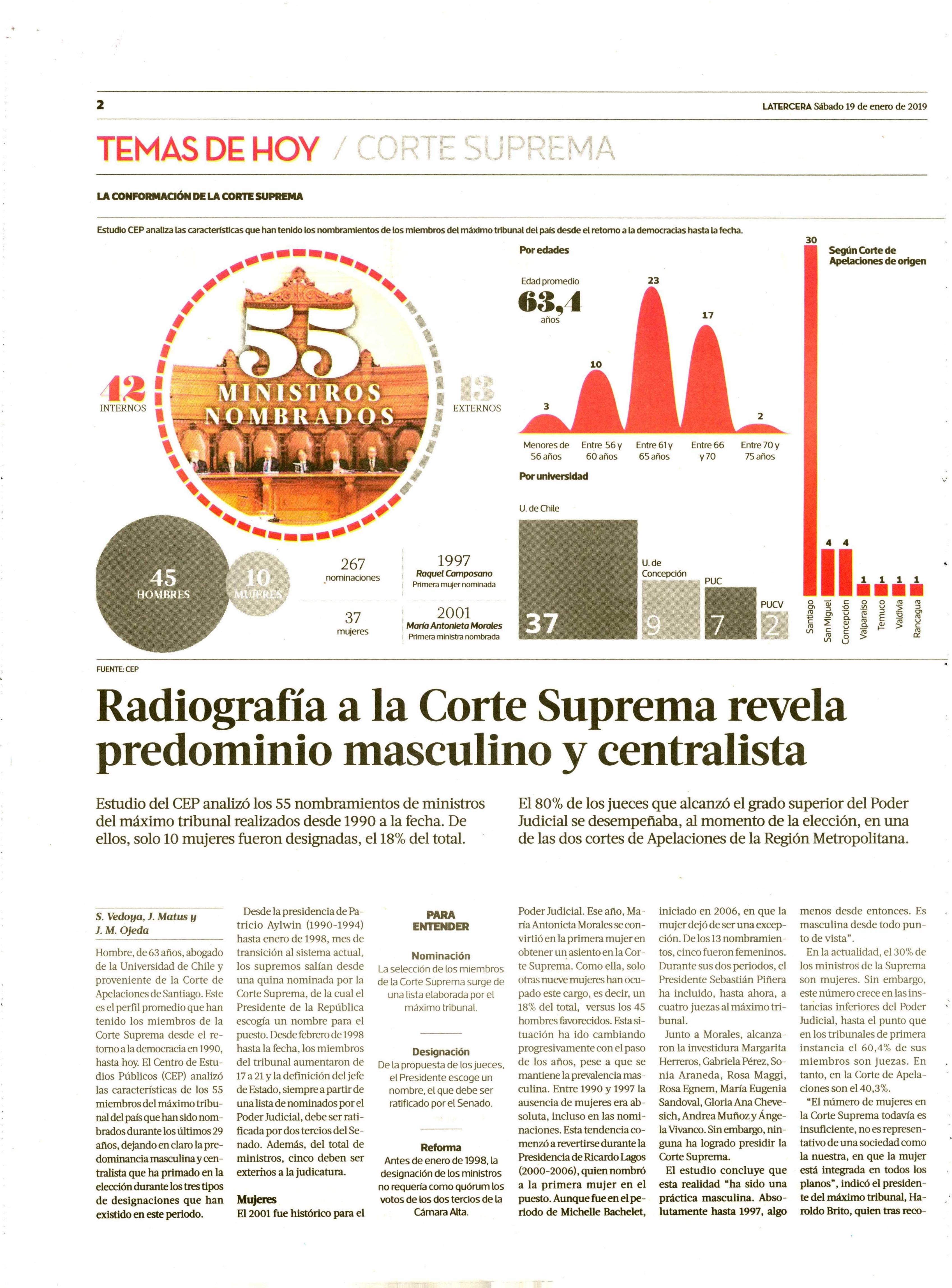 Radiografía a la Corte Suprema revela predominio masculino y centralista